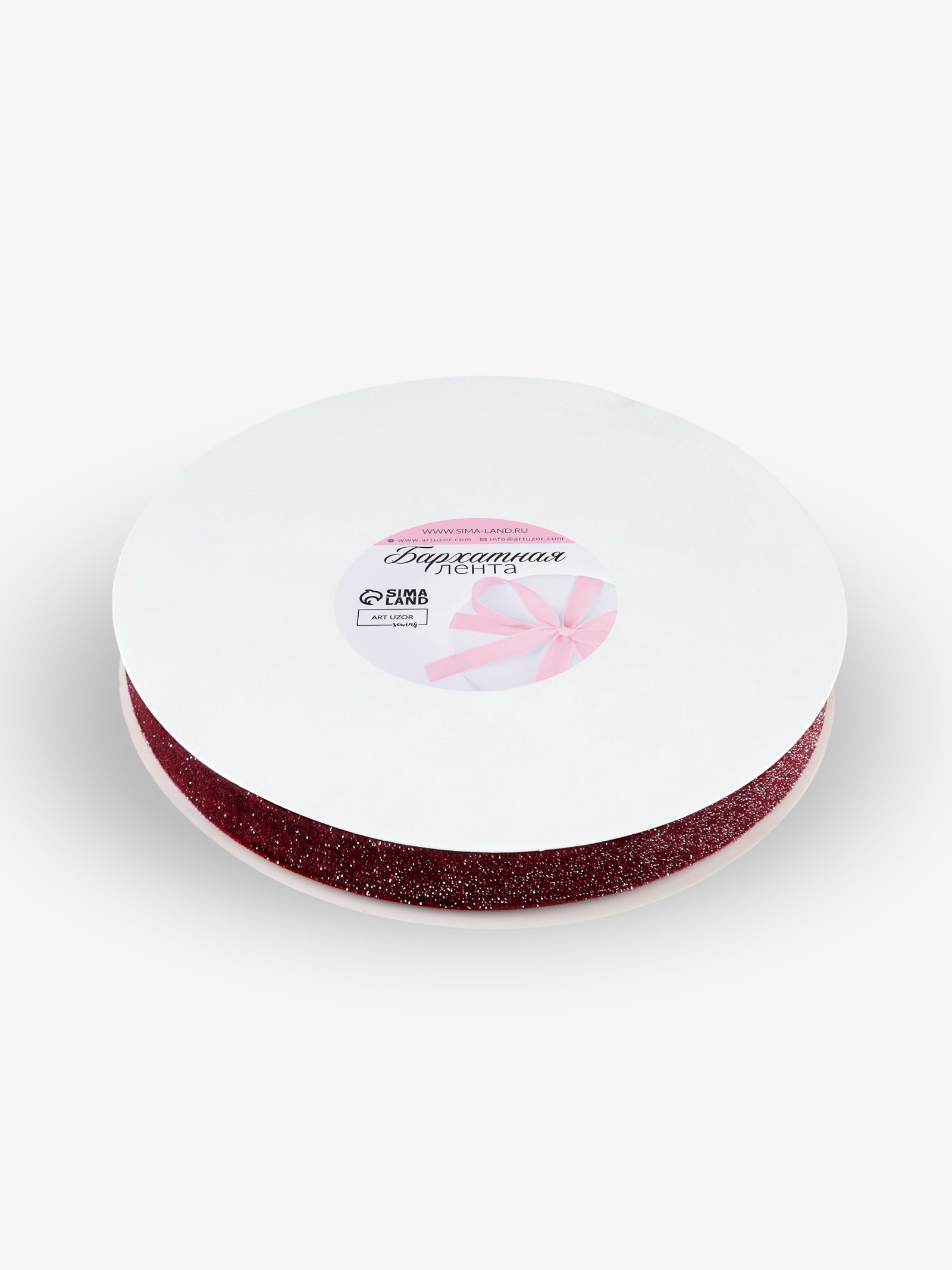 Лента бархатная, с серебряным люрексом, 20 мм, 18+-1 м, бордовая №46, 17x17x2 см., Арт Узор, Китай