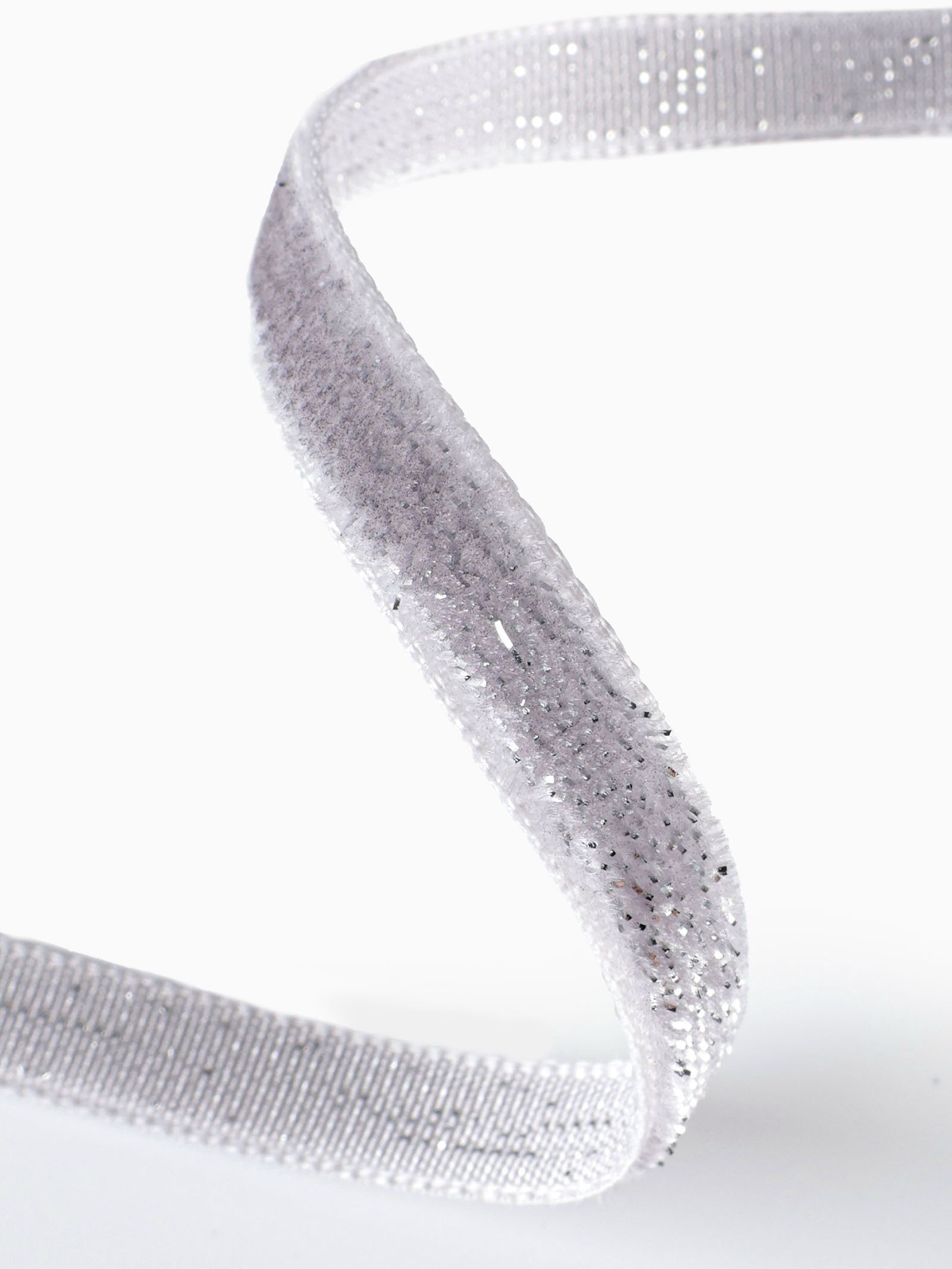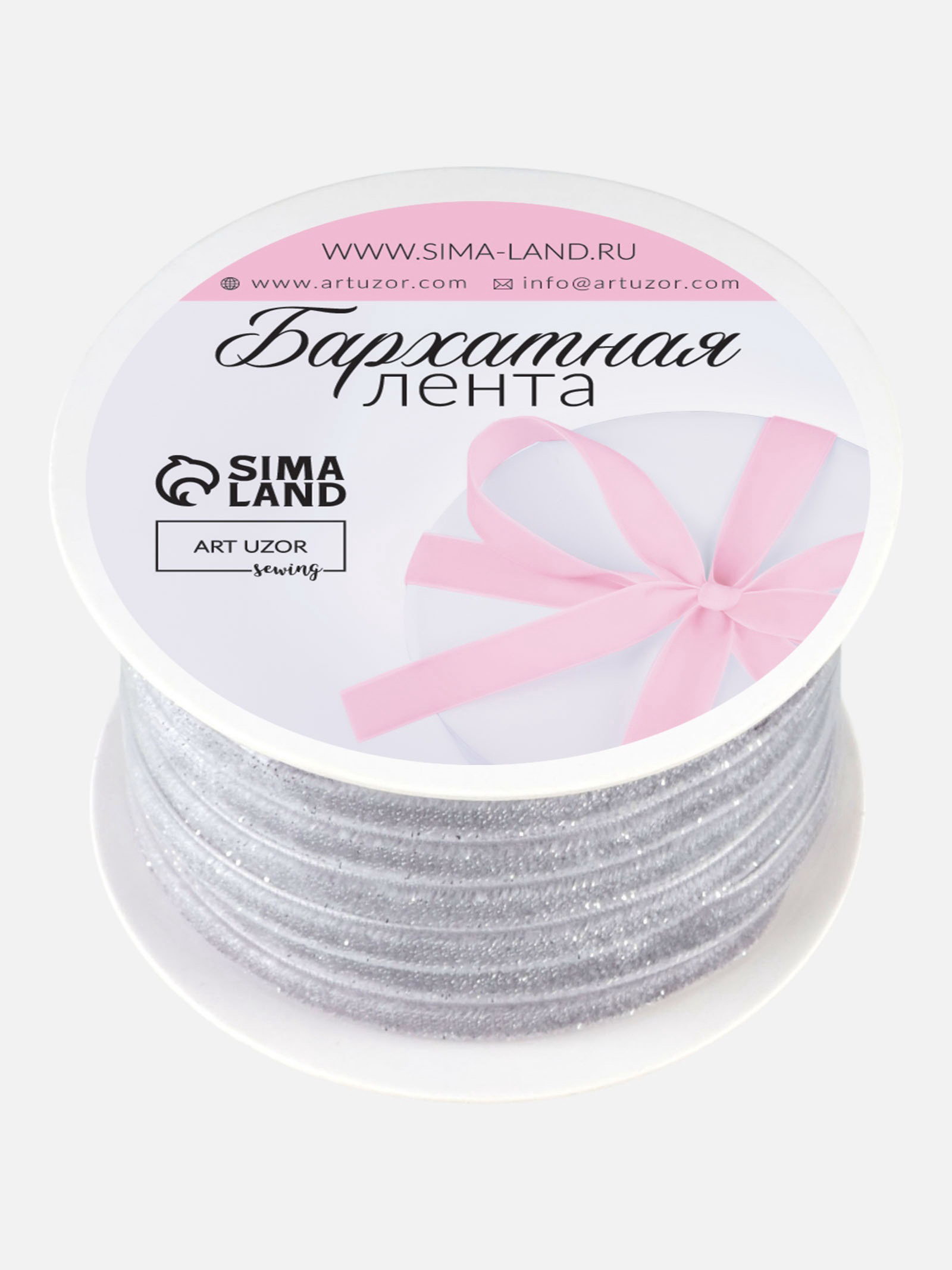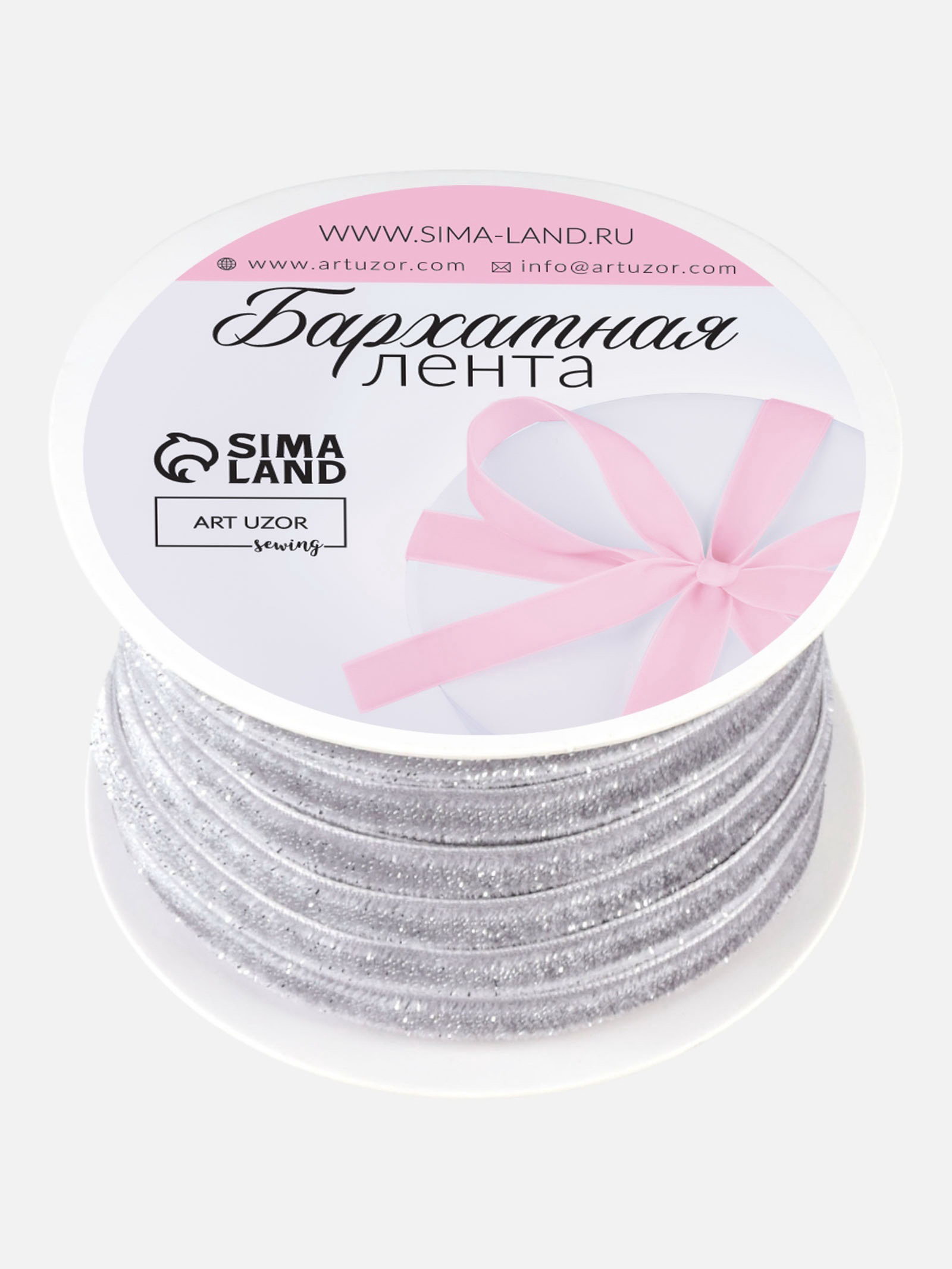 Лента бархатная, с серебряным люрексом, 6 мм, 18+-1 м, серая №184, 17x17x1 см., Арт Узор, Китай