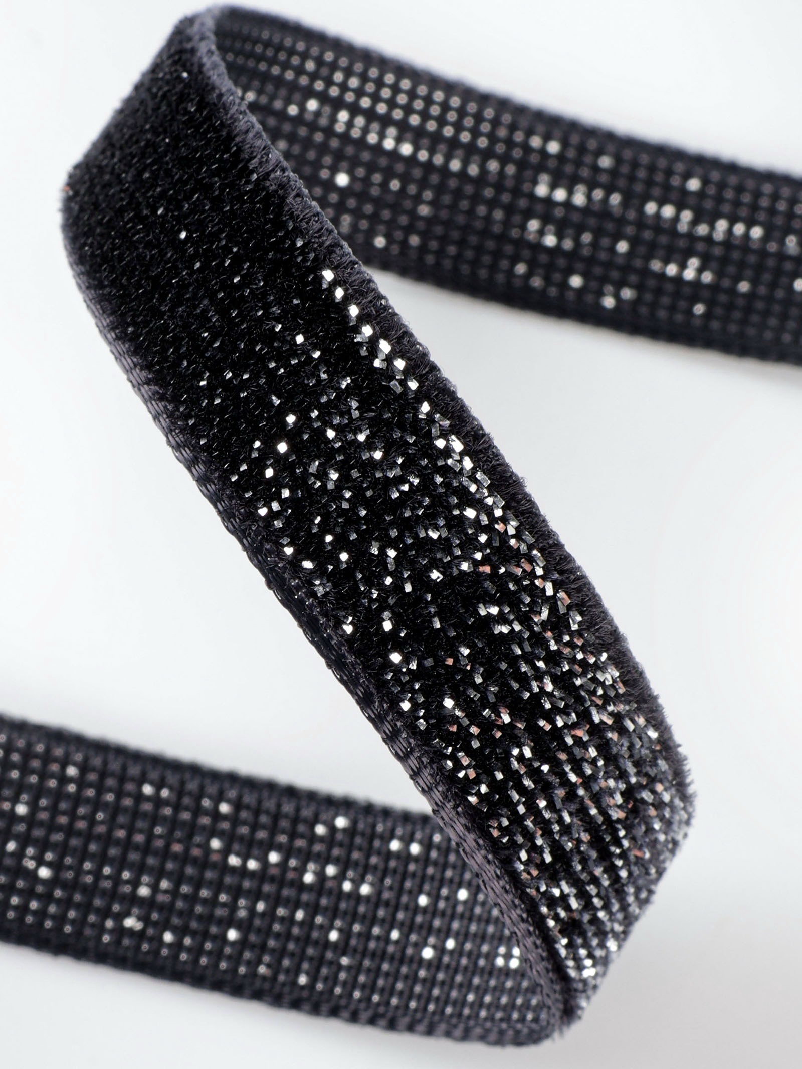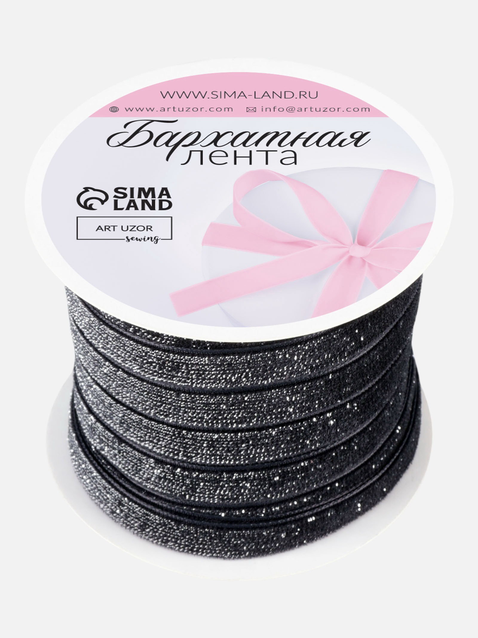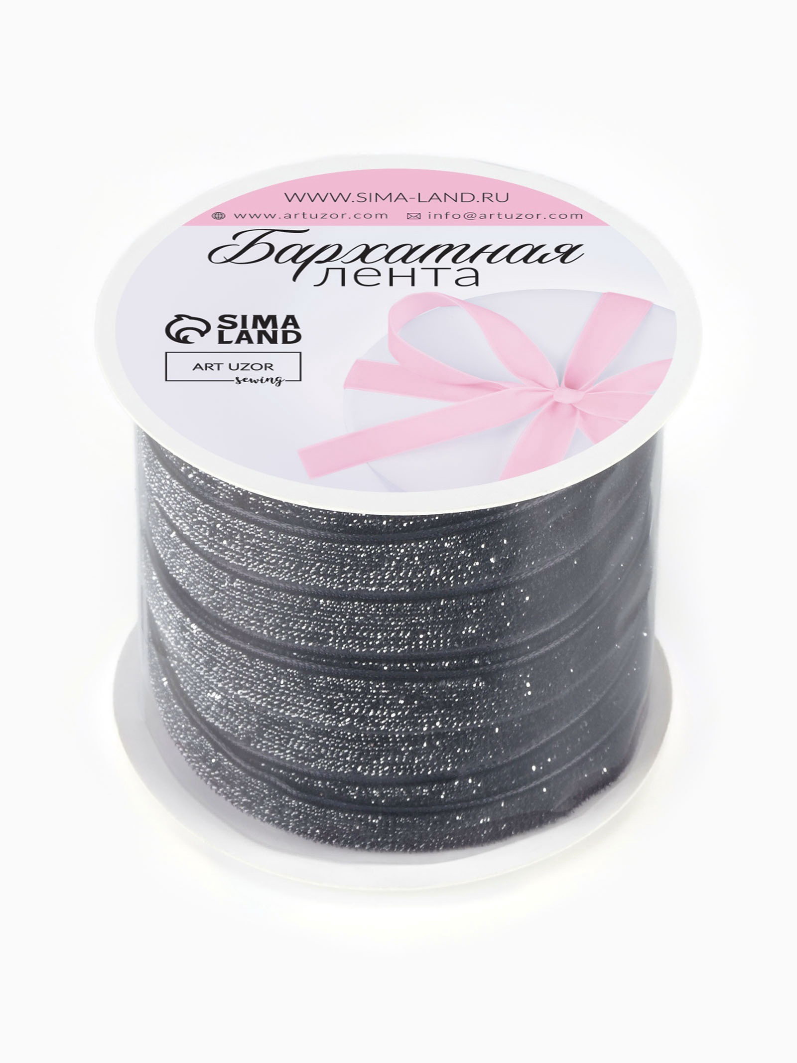 Лента бархатная, с серебряным люрексом, 10 мм, 18+-1 м, чёрная №03, 17x17x1 см., Арт Узор, Китай