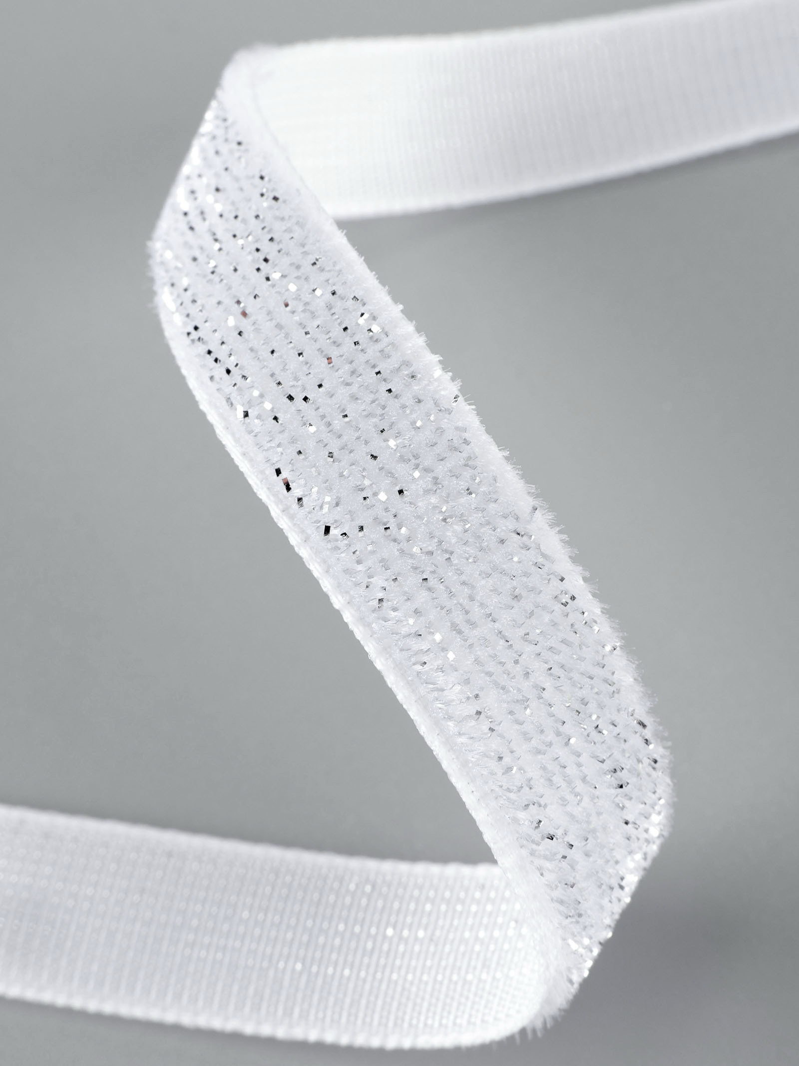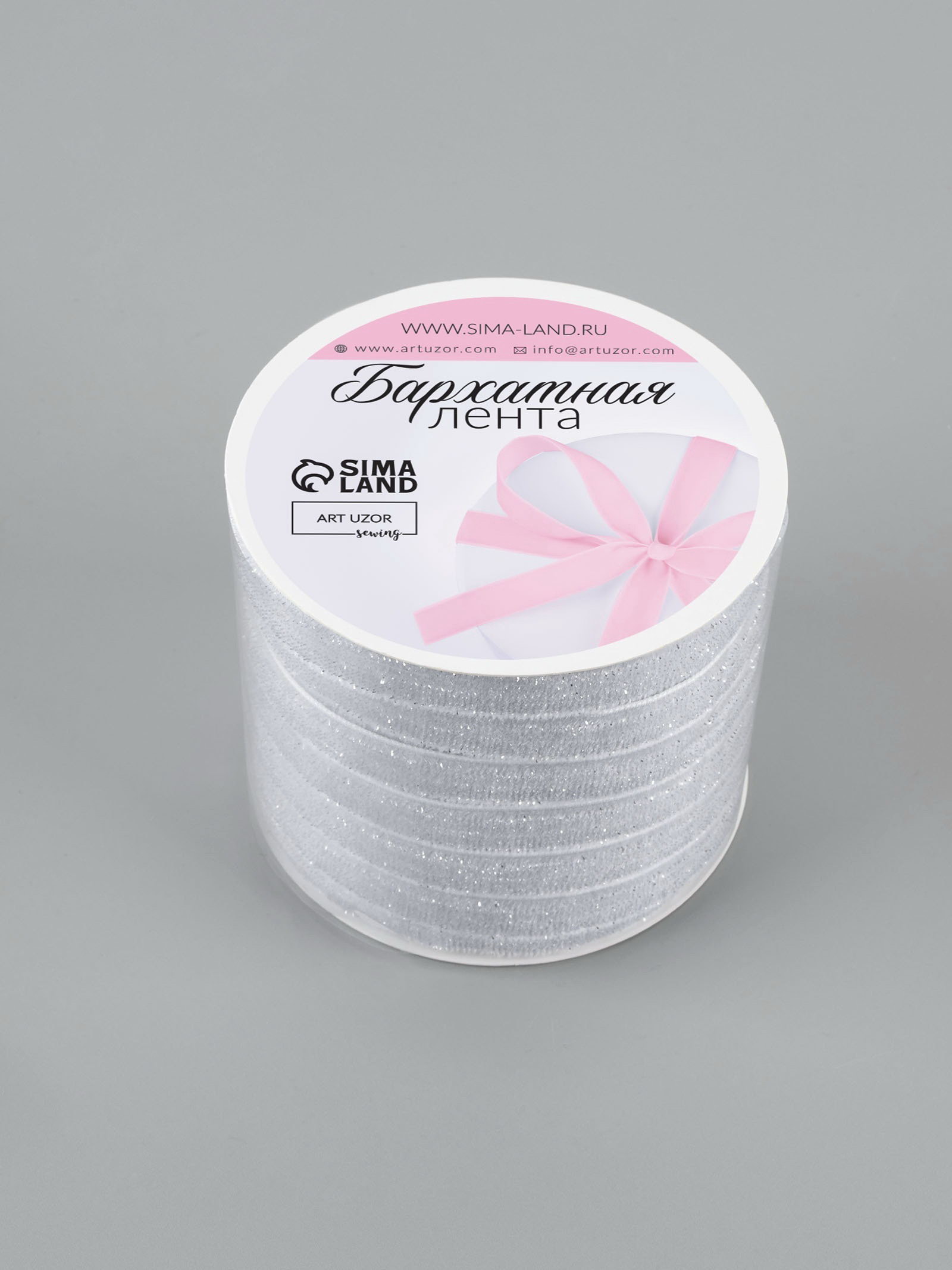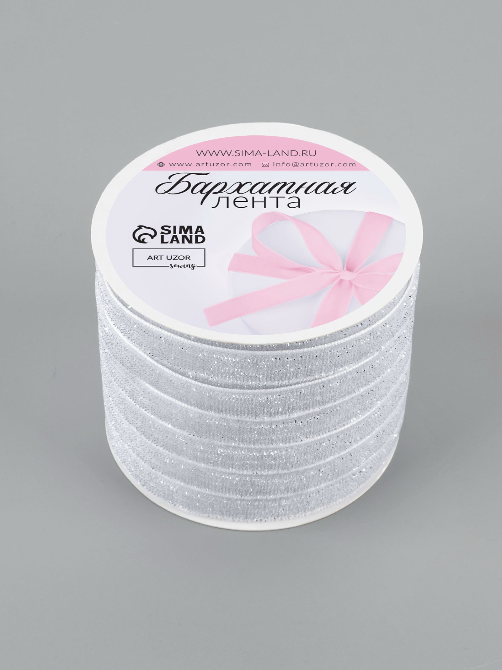 Лента бархатная, с серебряным люрексом, 10 мм, 18+-1 м, белая №01, 17x17x1 см., Арт Узор, Китай