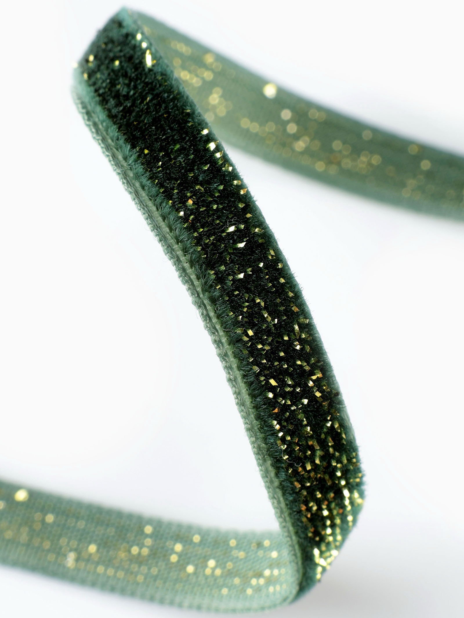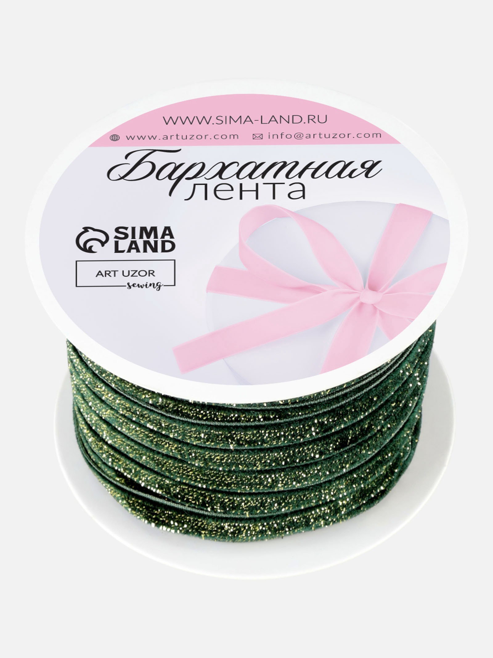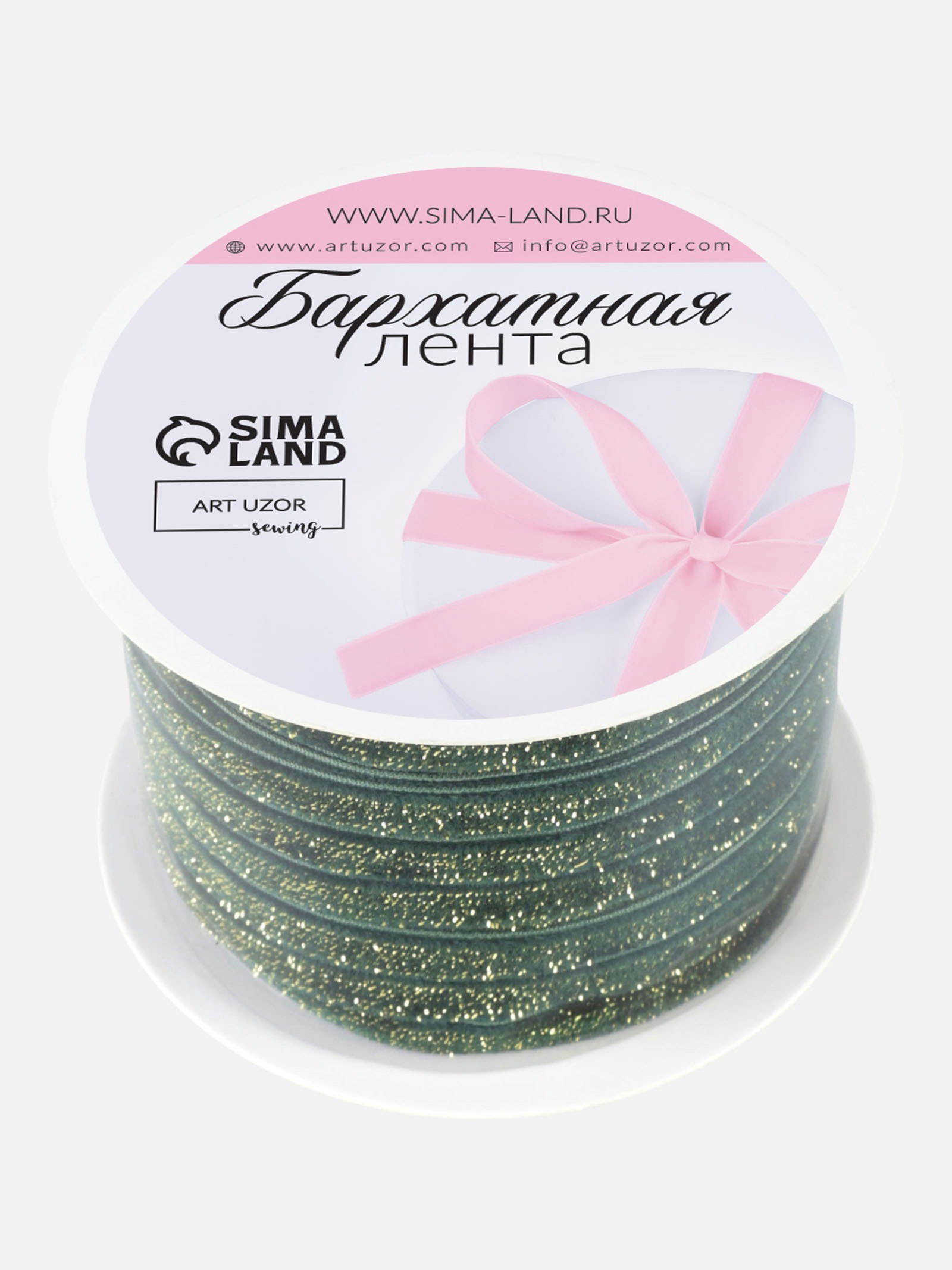 Лента бархатная, с золотым люрексом, 6 мм, 18+-1 м, зелёная №165, 17x17x1 см., Арт Узор, Китай