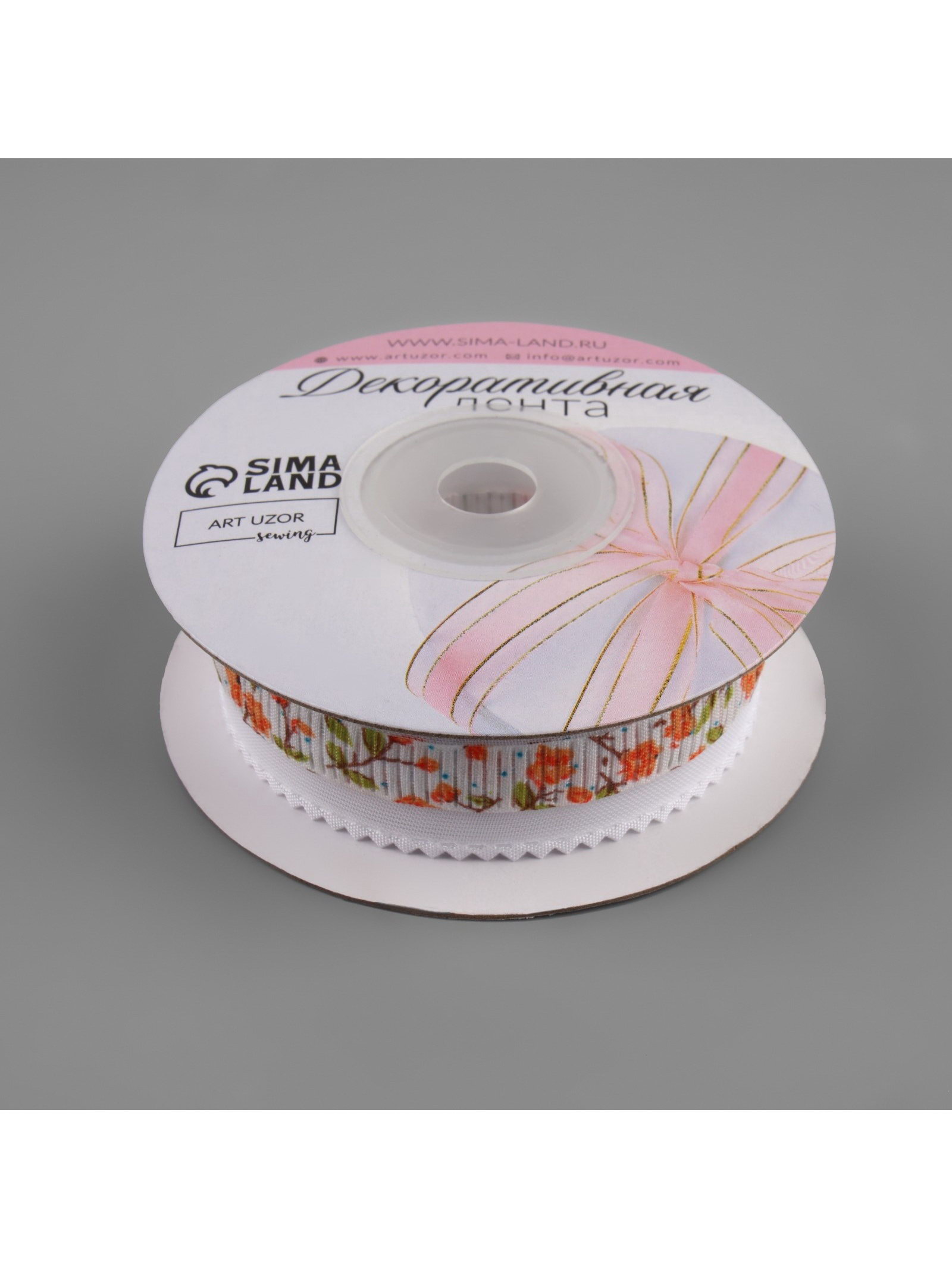 Лента декоративная "Розы", 25 мм, 9+-0.5 м, белая №10, 10x10x2.5 см., Арт Узор, Китай