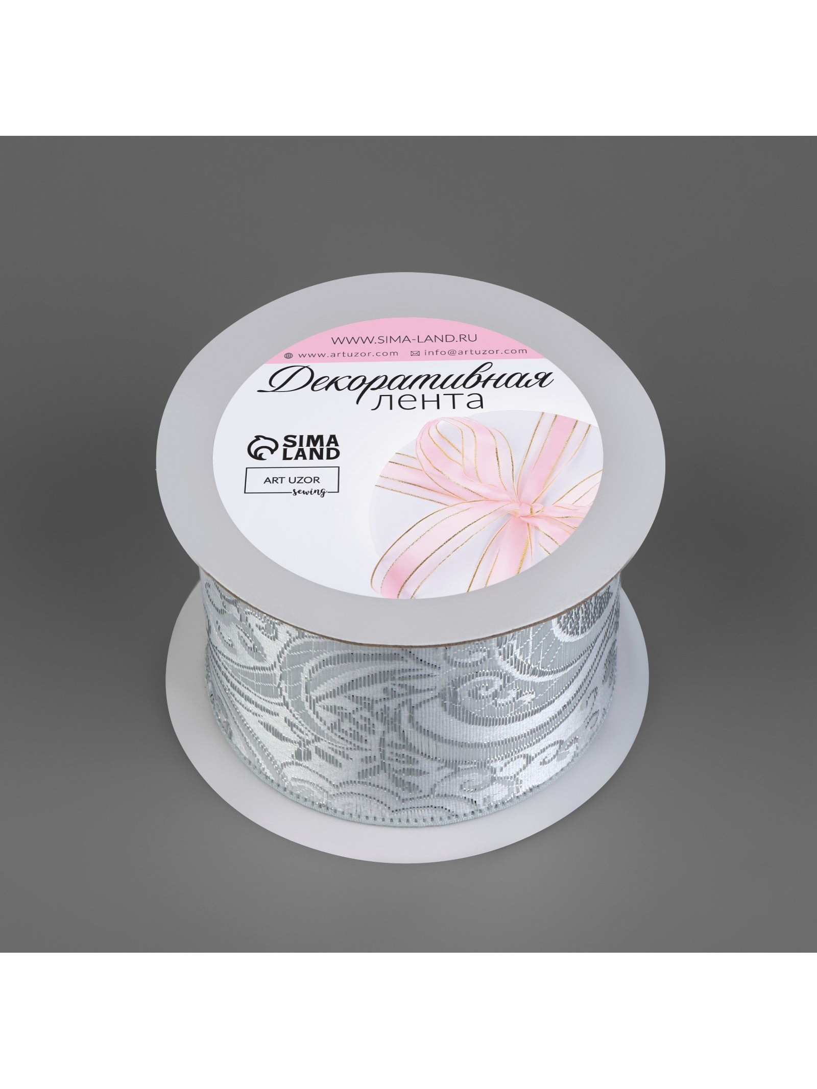 Лента декоративная "Жаккард", 50 мм, 9+-0.5 м, цвет серебряный, 9x9x5 см., Арт Узор, Китай