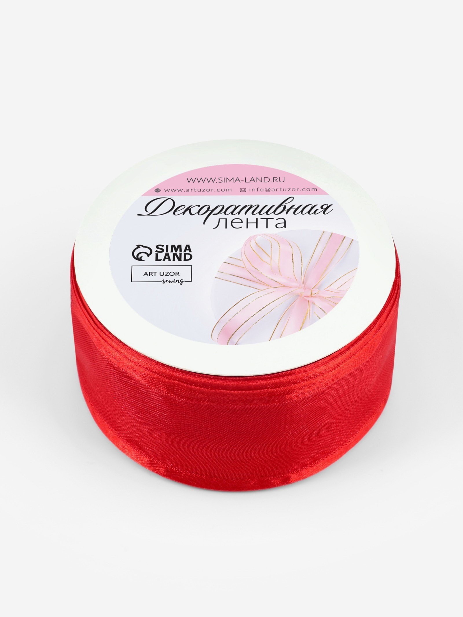 Лента декоративная, капроновая/атласная, 40 мм, 18+-1 м, красная, 9x9x4 см., Арт Узор, Китай