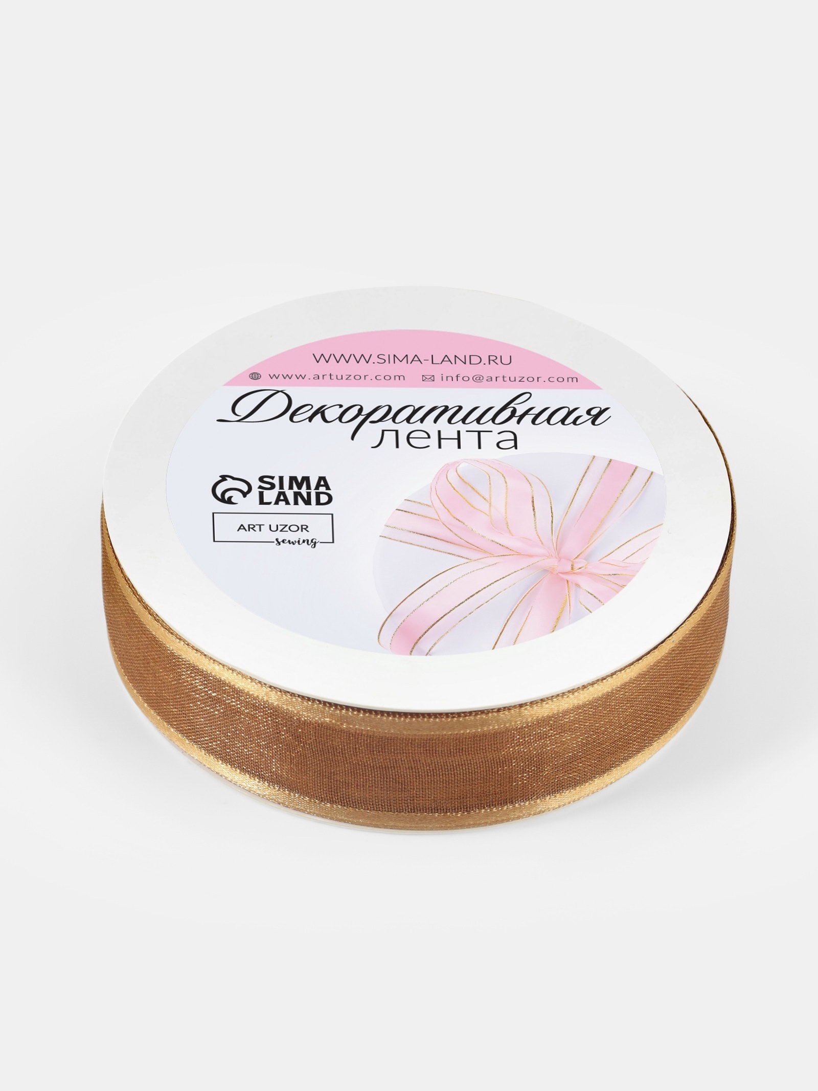 Лента декоративная, капроновая/атласная, 20 мм, 18+-1 м, бежевая, 8x8x2 см., Арт Узор, Китай