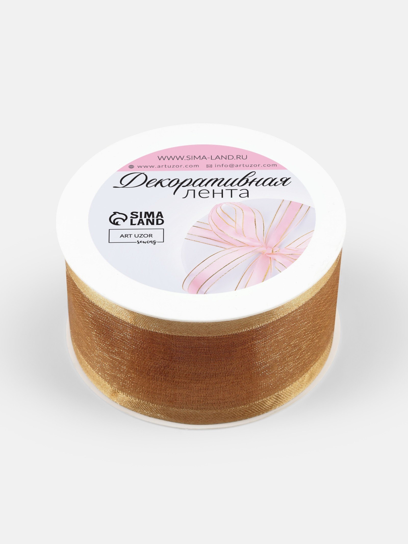 Лента декоративная, капроновая/атласная, 40 мм, 18+-1 м, бежевая, 9x9x4 см., Арт Узор, Китай