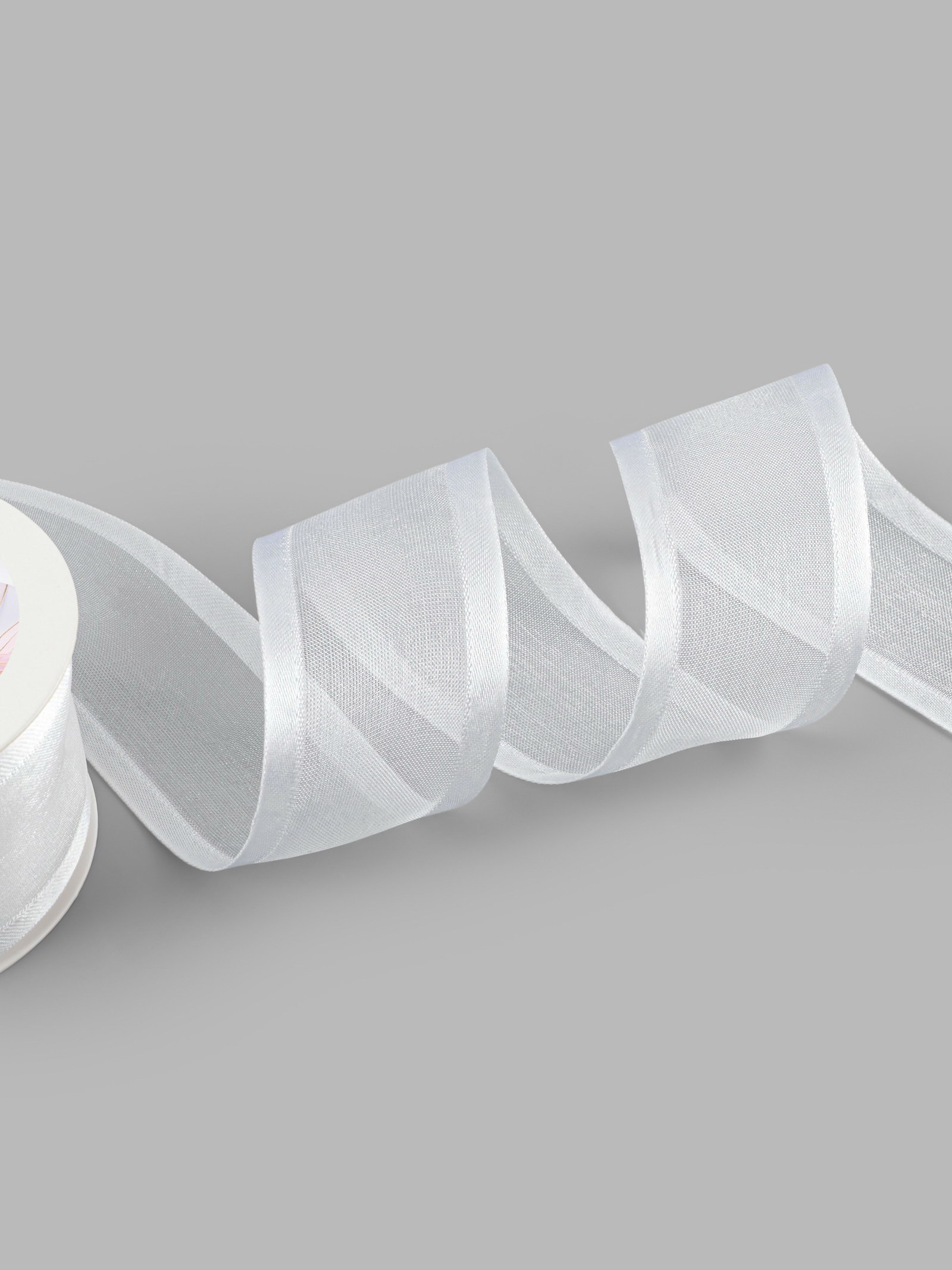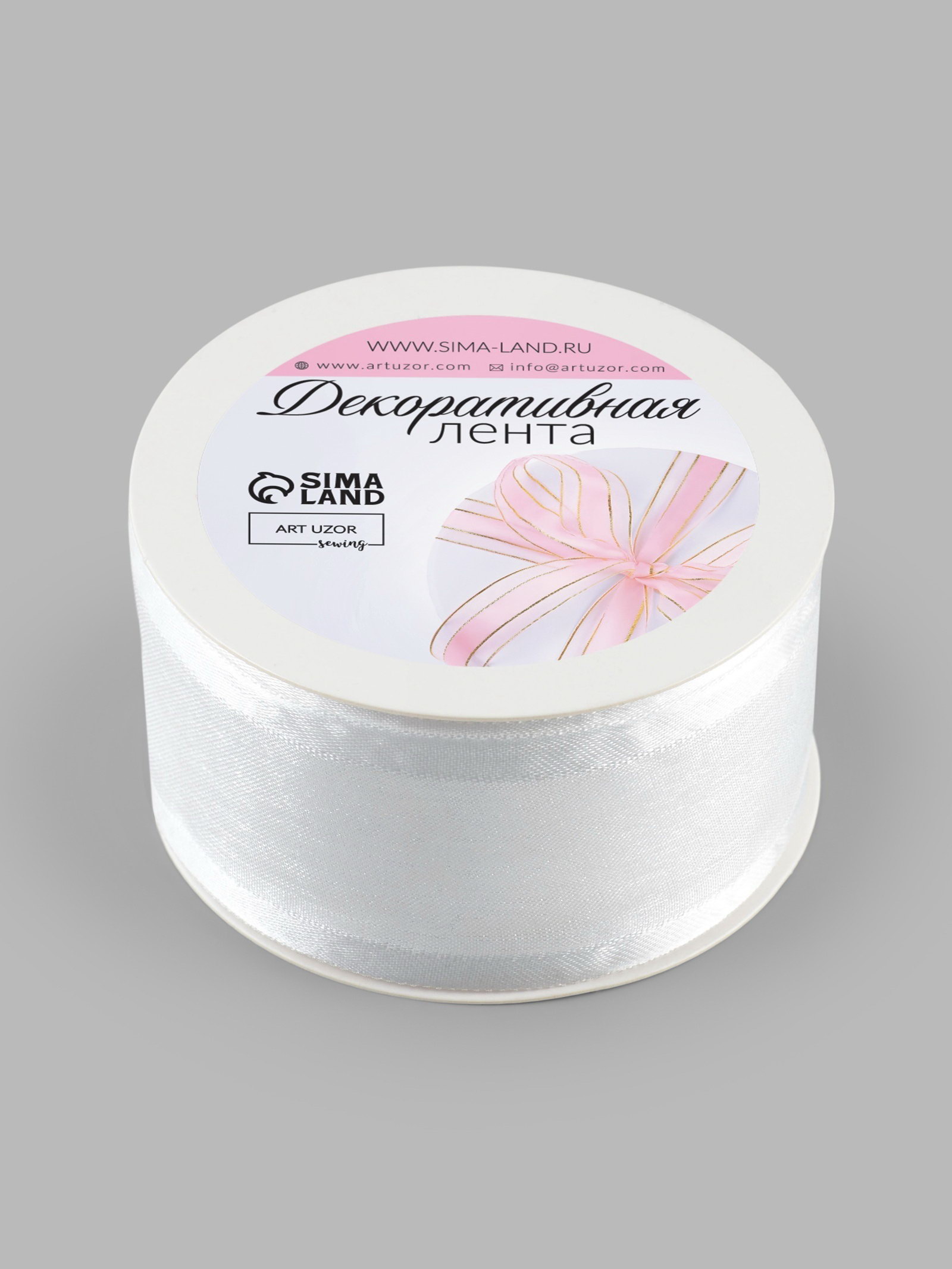 Лента декоративная, капроновая, атласная, 40 мм, 18+-1 м, белая, 8x8x4 см., Арт Узор, Китай