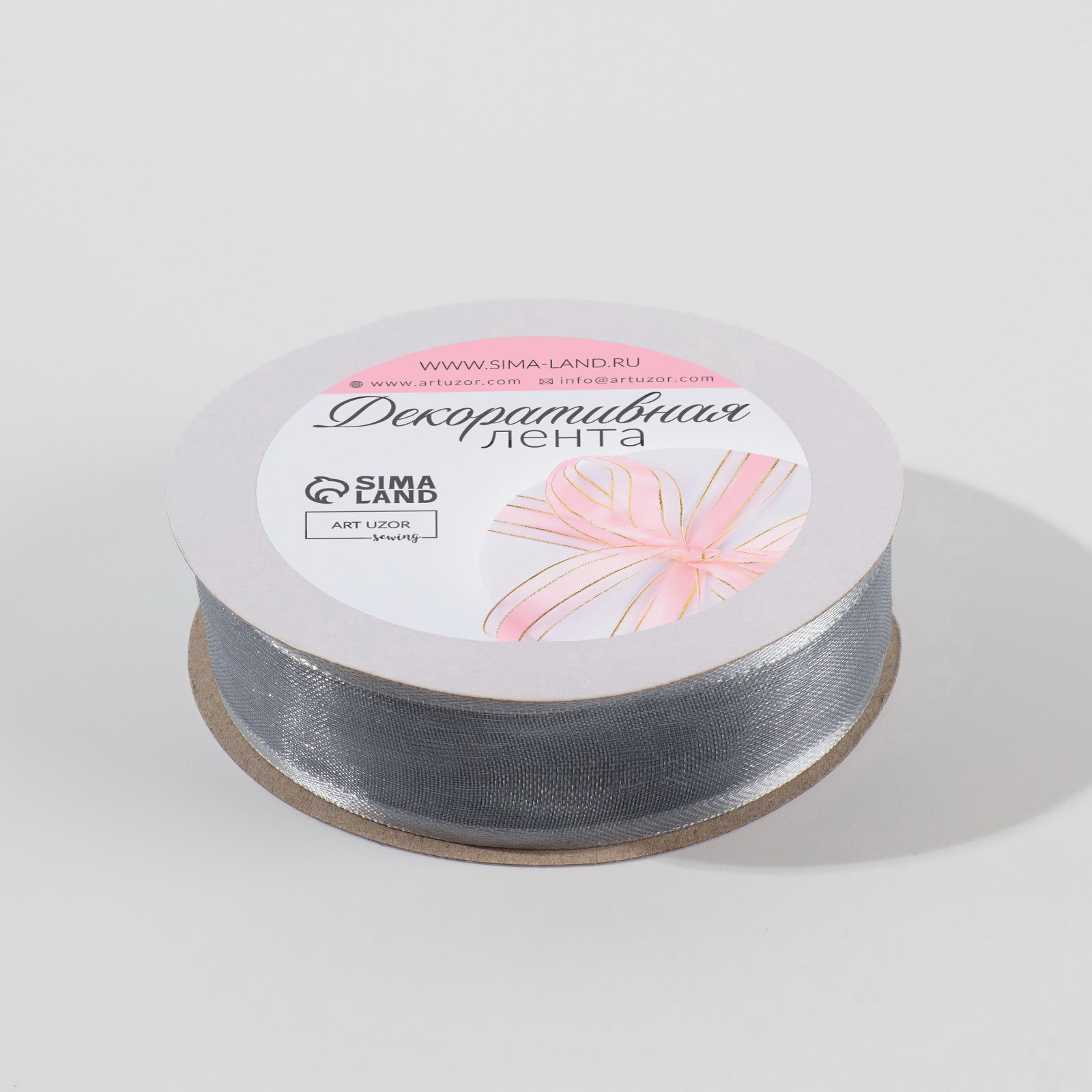 Лента декоративная, капроновая/атласная, 20 мм, 18+-1 м, цвет серебряный, 9x9x2 см., Арт Узор, Китай