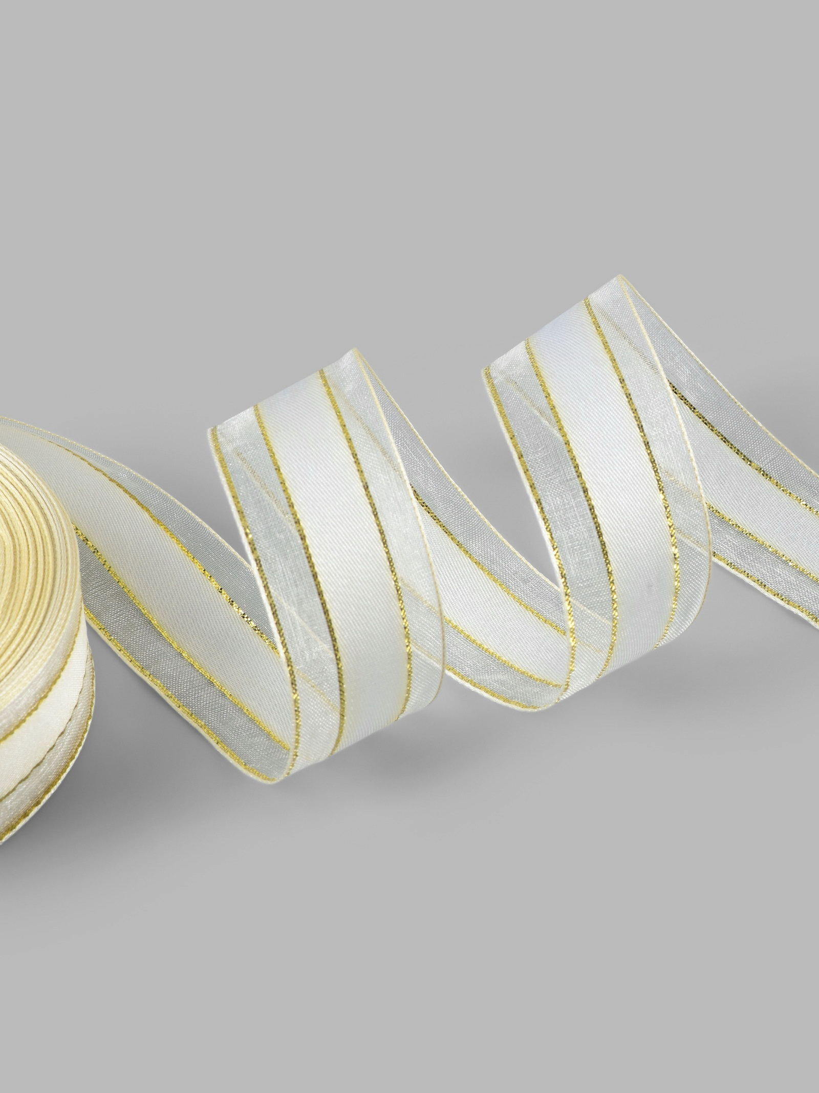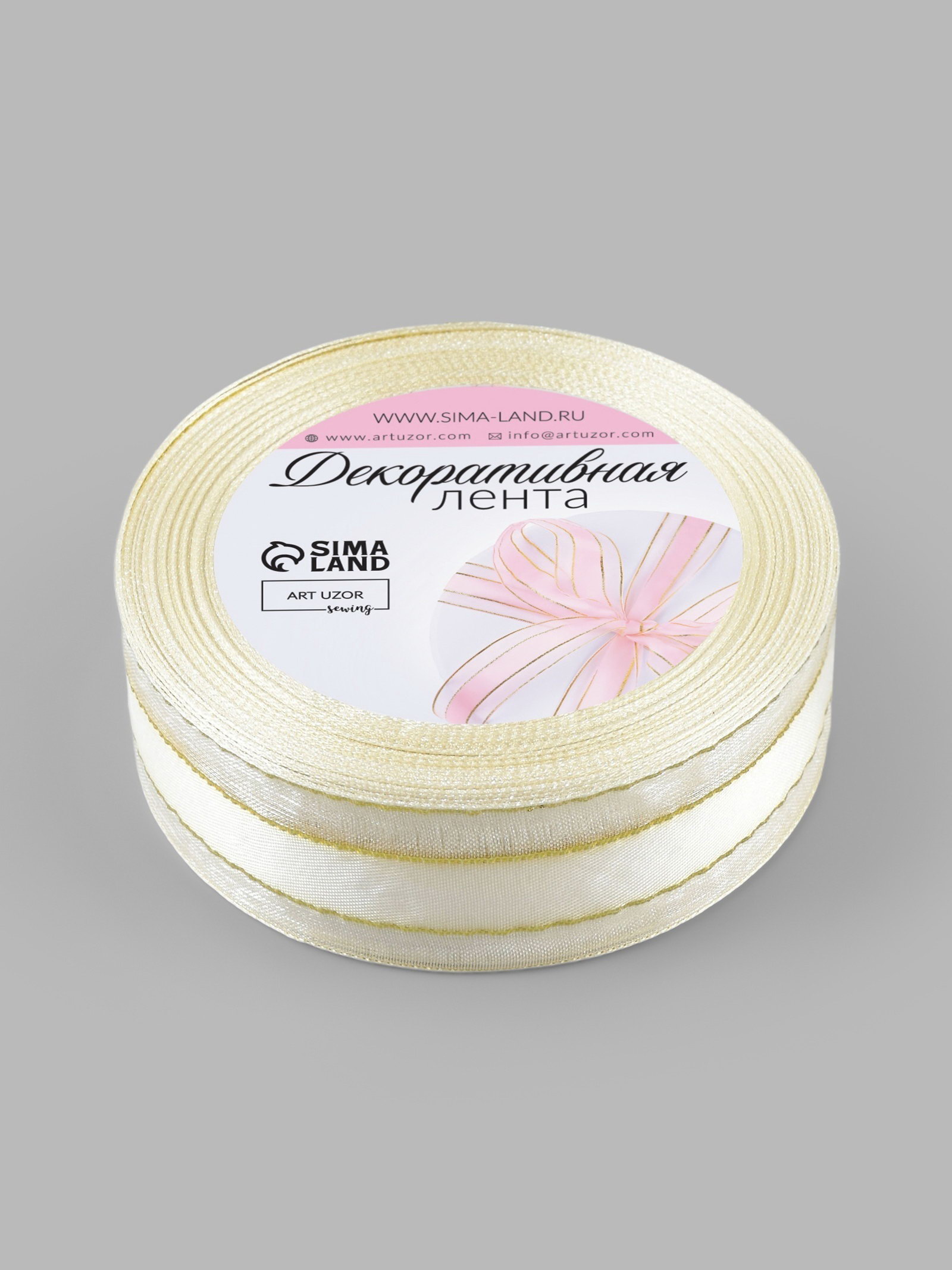 Лента декоративная, капроновая, атласная, с люрексом, 25 мм, 18+-1 м, белая, 9x9x2.5 см., Арт Узор, Китай