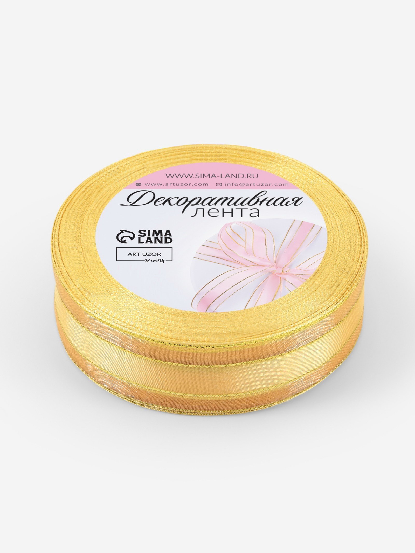 Лента декоративная, капроновая/атласная, с люрексом, 25 мм, 18+-1 м, цвет золотой, 9x9x2.5 см., Арт Узор, Китай