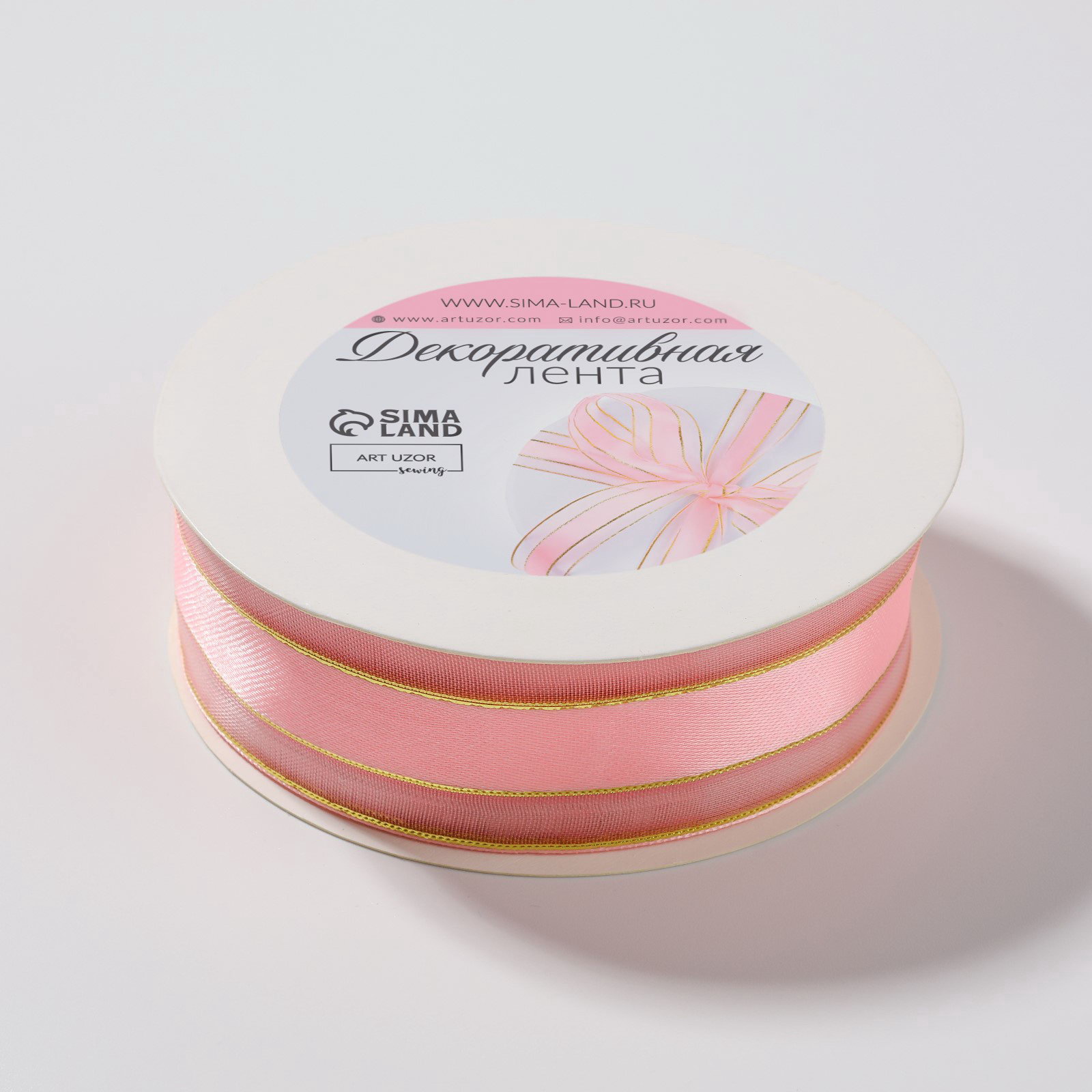 Лента декоративная, капроновая/атласная, с люрексом, 25 мм, 18+-1 м, розовая, 9x9x2.5 см., Арт Узор, Китай