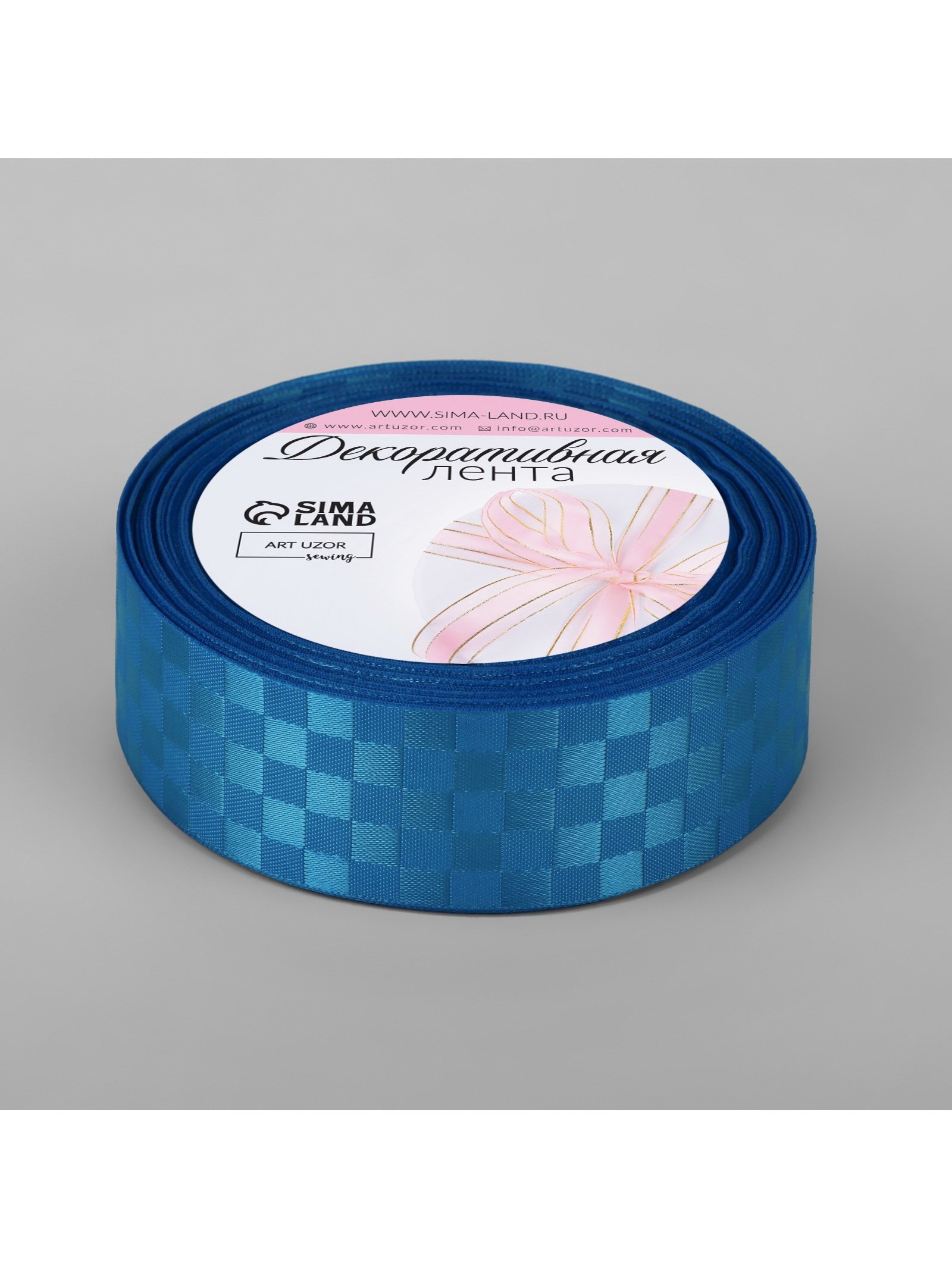 Лента декоративная "Квадраты", 25 мм, 9.1+-0.5 м, ярко-голубая, 9x9x2.5 см., Арт Узор, Китай