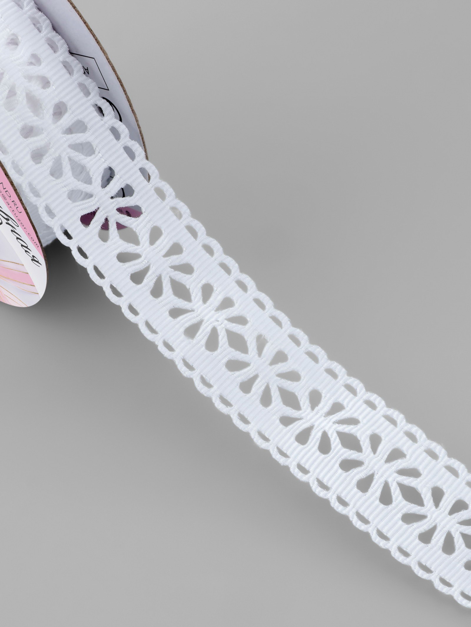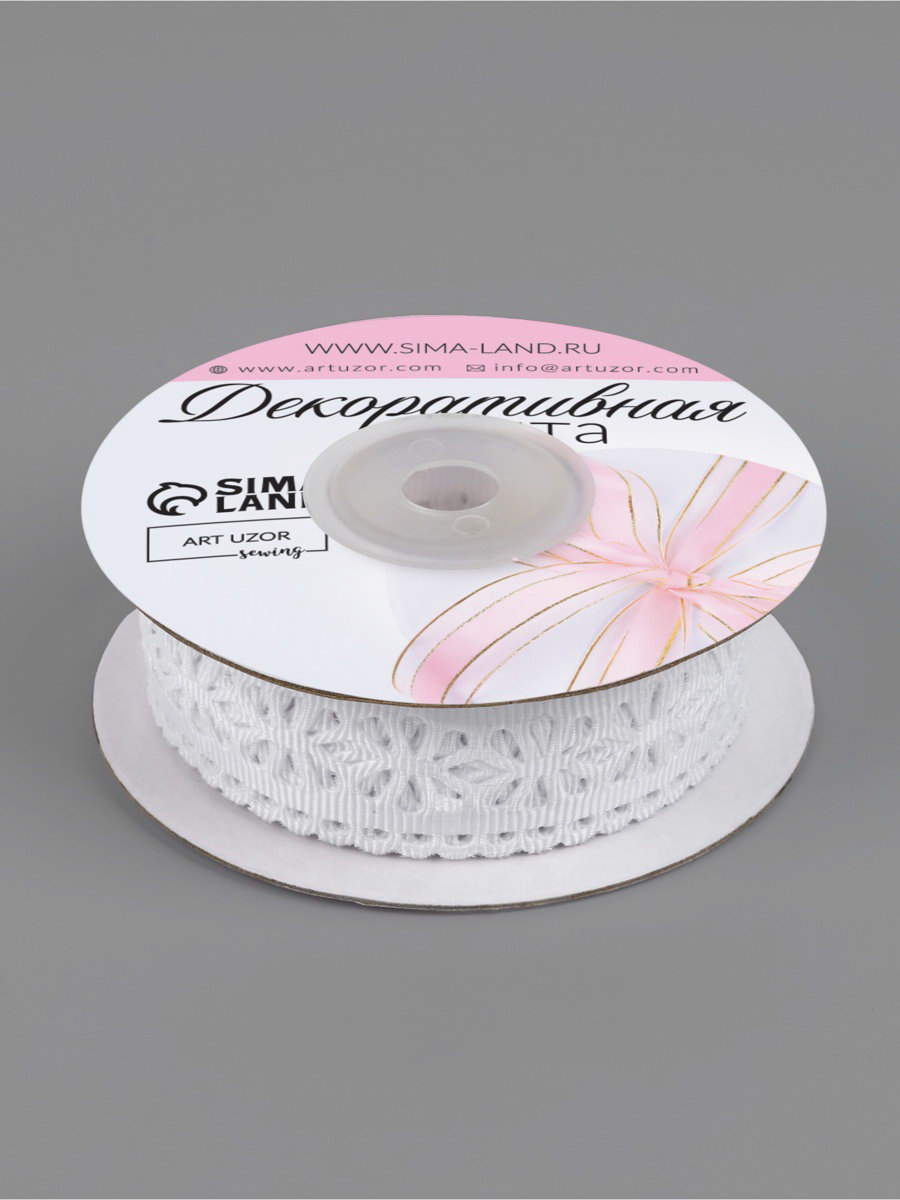 Лента декоративная, репсовая "Ажурные цветы", 25 мм, 9.1+-0.5 м, белая, 9x9x2.5 см., Арт Узор, Китай