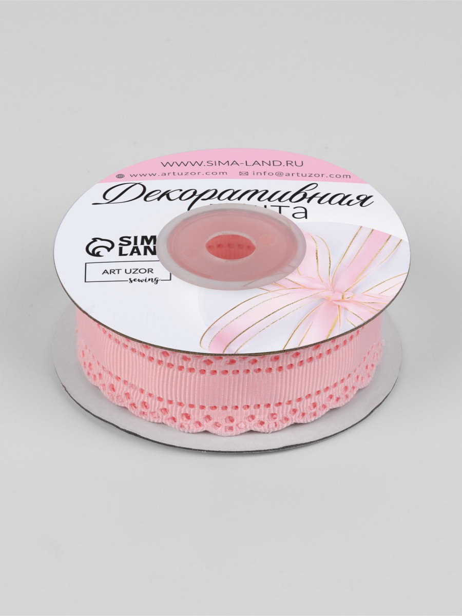 Лента декоративная, репсовая, с ажурным краем, 25 мм, 9.1+-0.5 м, розовая, 9x9x2.5 см., Арт Узор, Китай