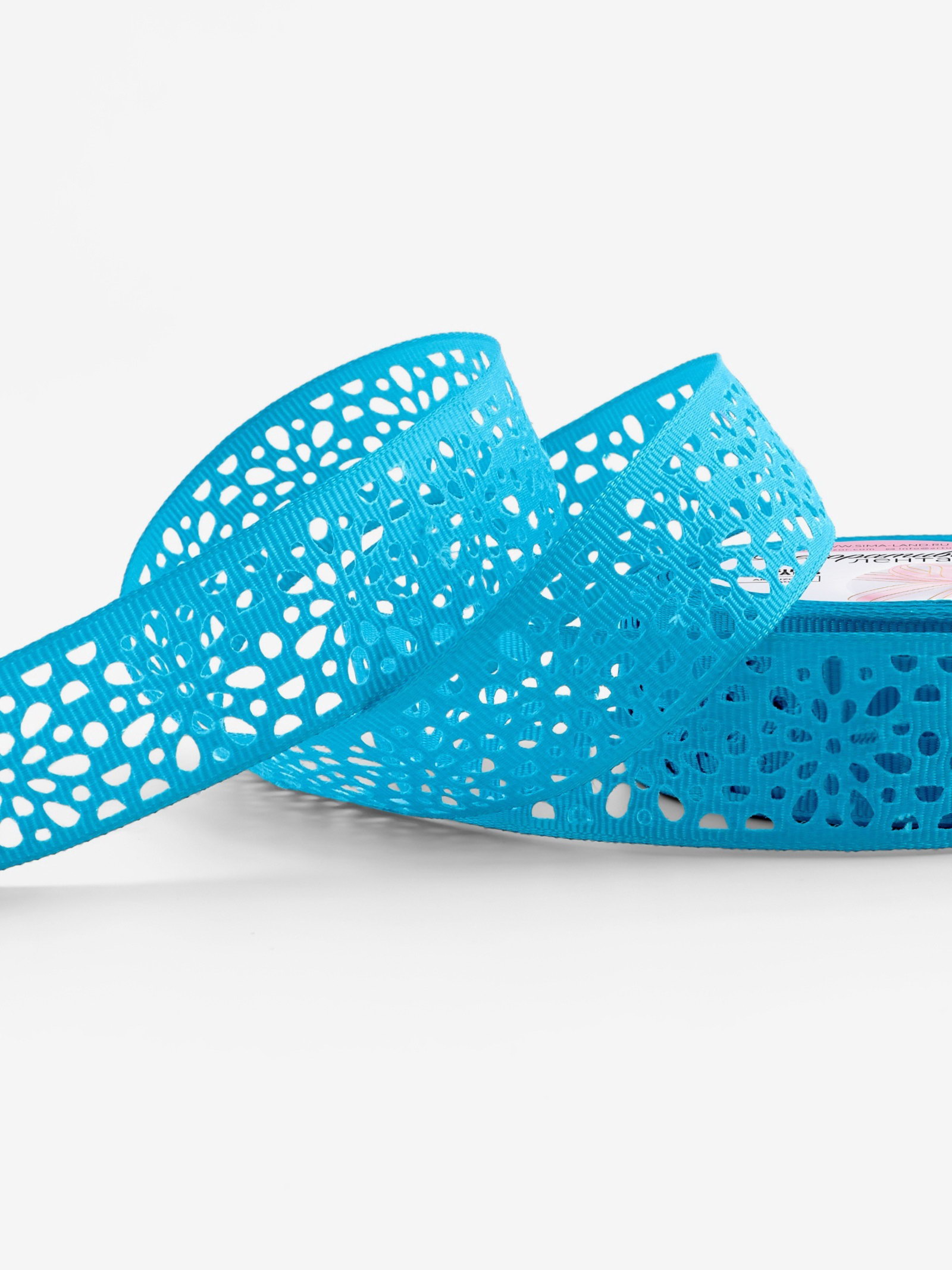 Лента декоративная, репсовая, ажурная, 25 мм, 9.1+-0.5 м, ярко-голубая, 9x9x2.5 см., Арт Узор, Китай