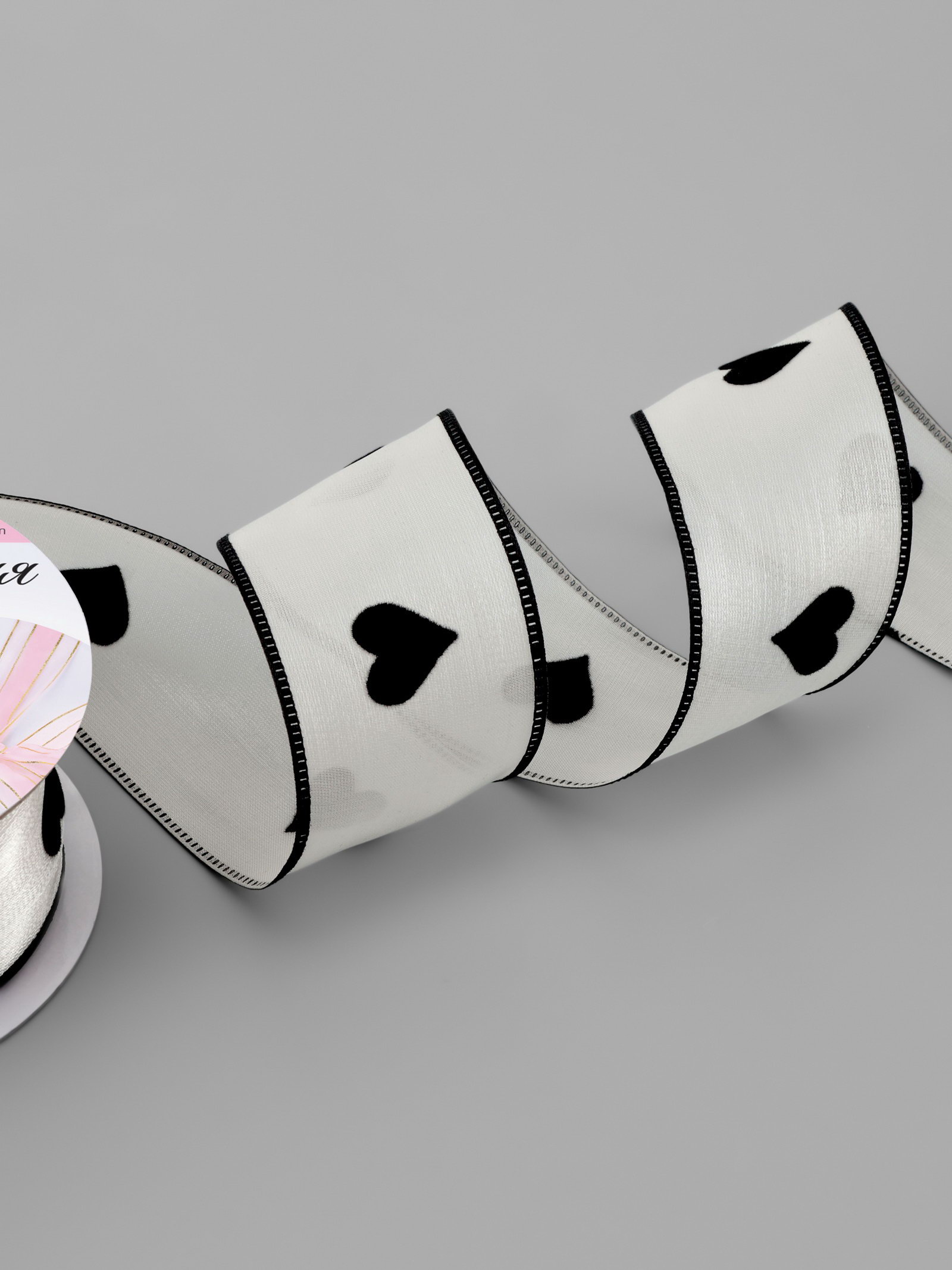 Лента капроновая "Сердечки", с рисунком, 38 ммx9.1+-0.5 м, бежевая, чёрная, 9x9x4 см., Арт Узор, Китай