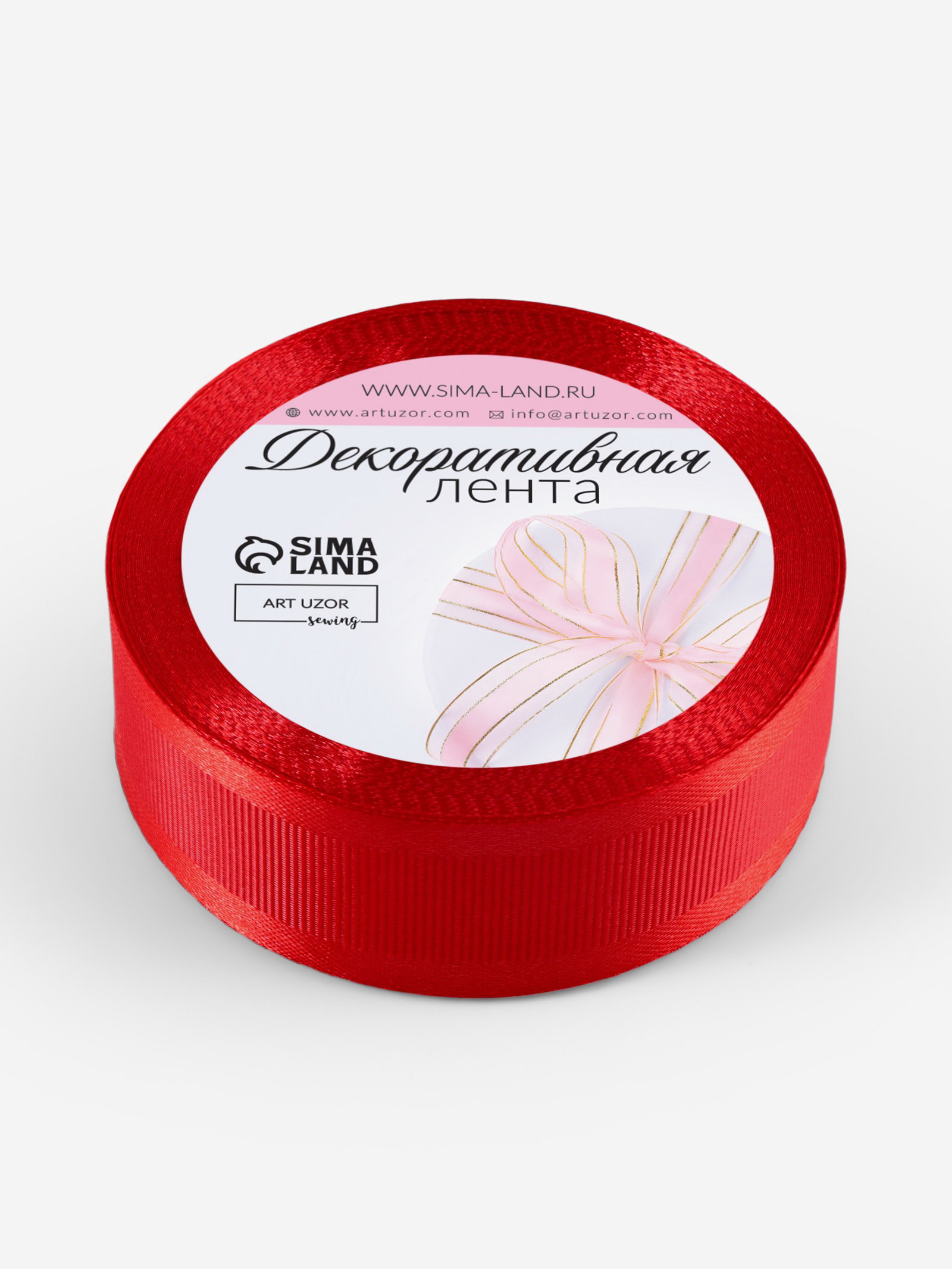 Лента декоративная, репсовая/атласная, 25 мм, 9.1 +- 0.5 м, красная №26, 9x9x2.5 см., Арт Узор, Китай