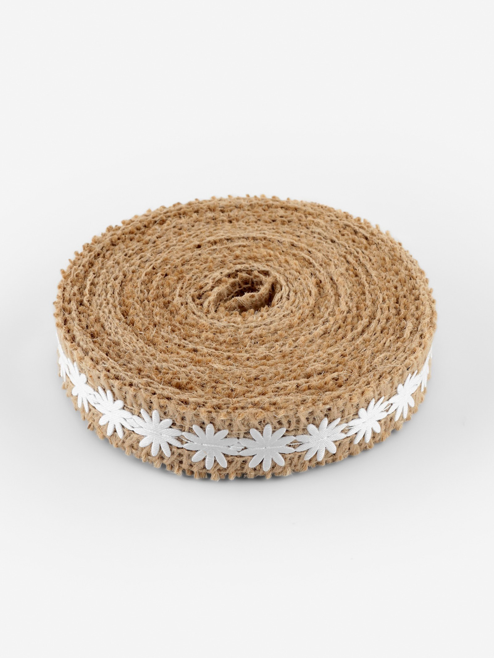 Лента холщовая "Ромашки", натуральная, 20 мм, 4.5+-0.5 м, белая, 7x7x2 см., Арт Узор, Китай