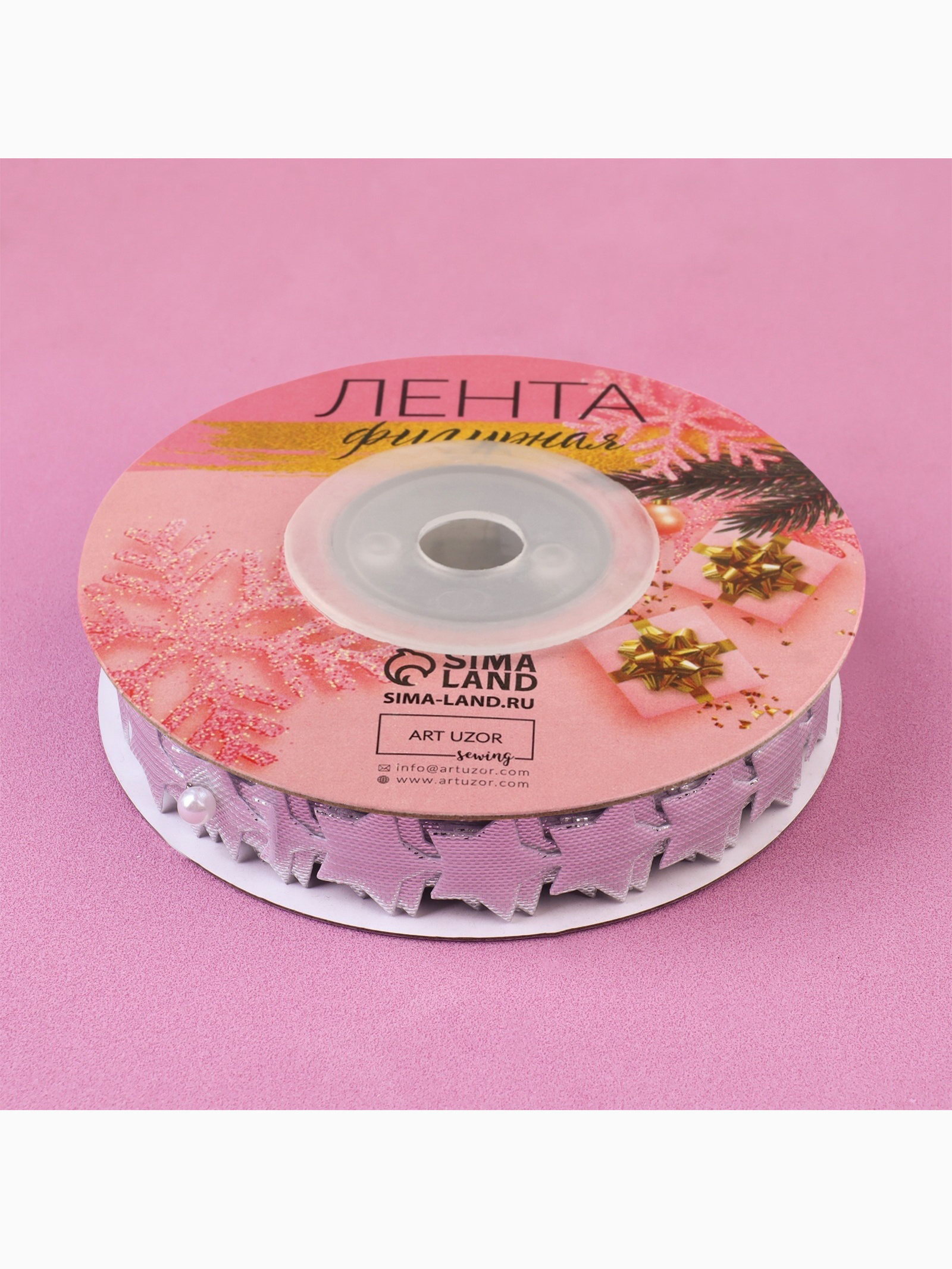 Лента декоративная фигурная "Звёзды", 15 мм, 9+-0.5 м, цвет серебряный, 9x9x1.5 см., Арт Узор, Китай