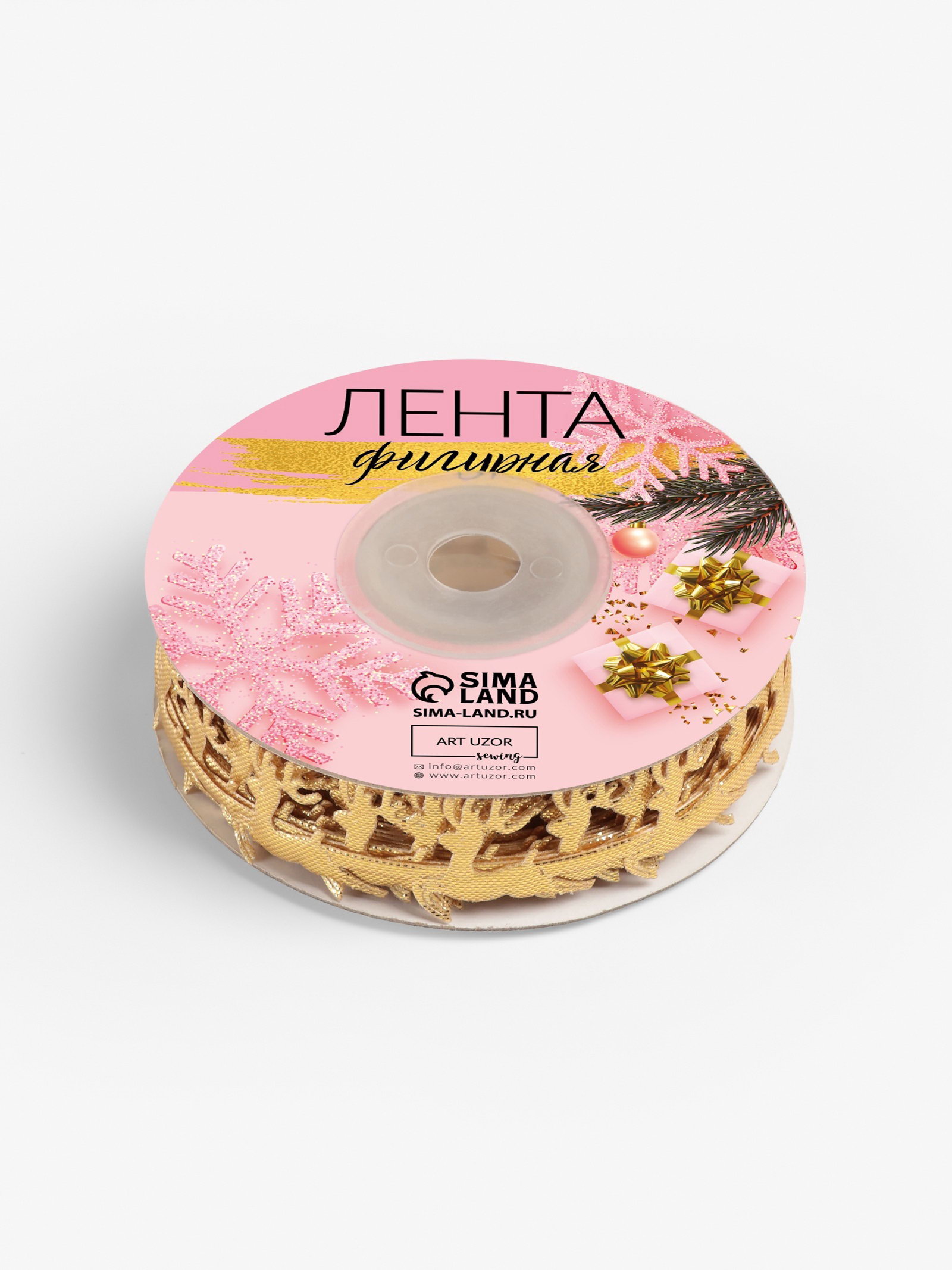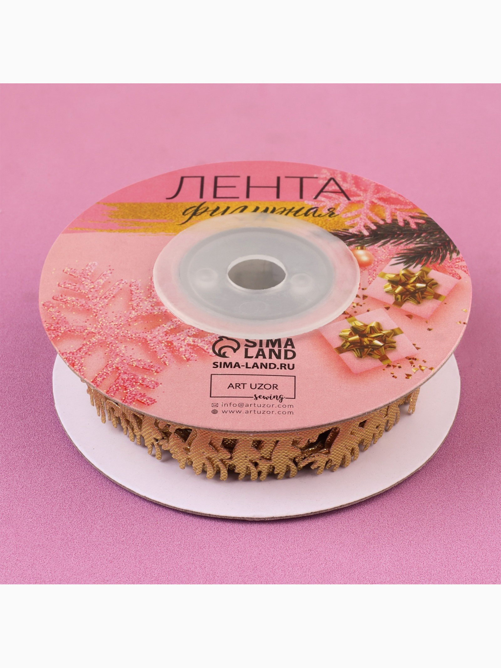 Лента декоративная фигурная "Олени", 20 мм, 9+-0.5 м, цвет золотой, 9x9x2 см., Арт Узор, Китай