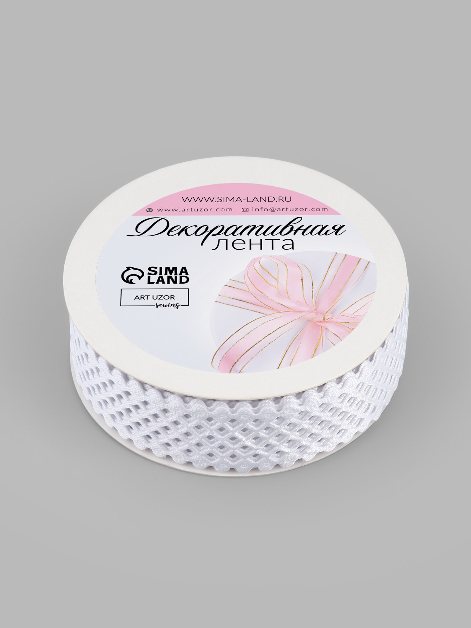 Лента фигурная "Ромбы резные", 25 мм, 9+-0.5 м, белая, 10x10x2.5 см., Арт Узор, Китай