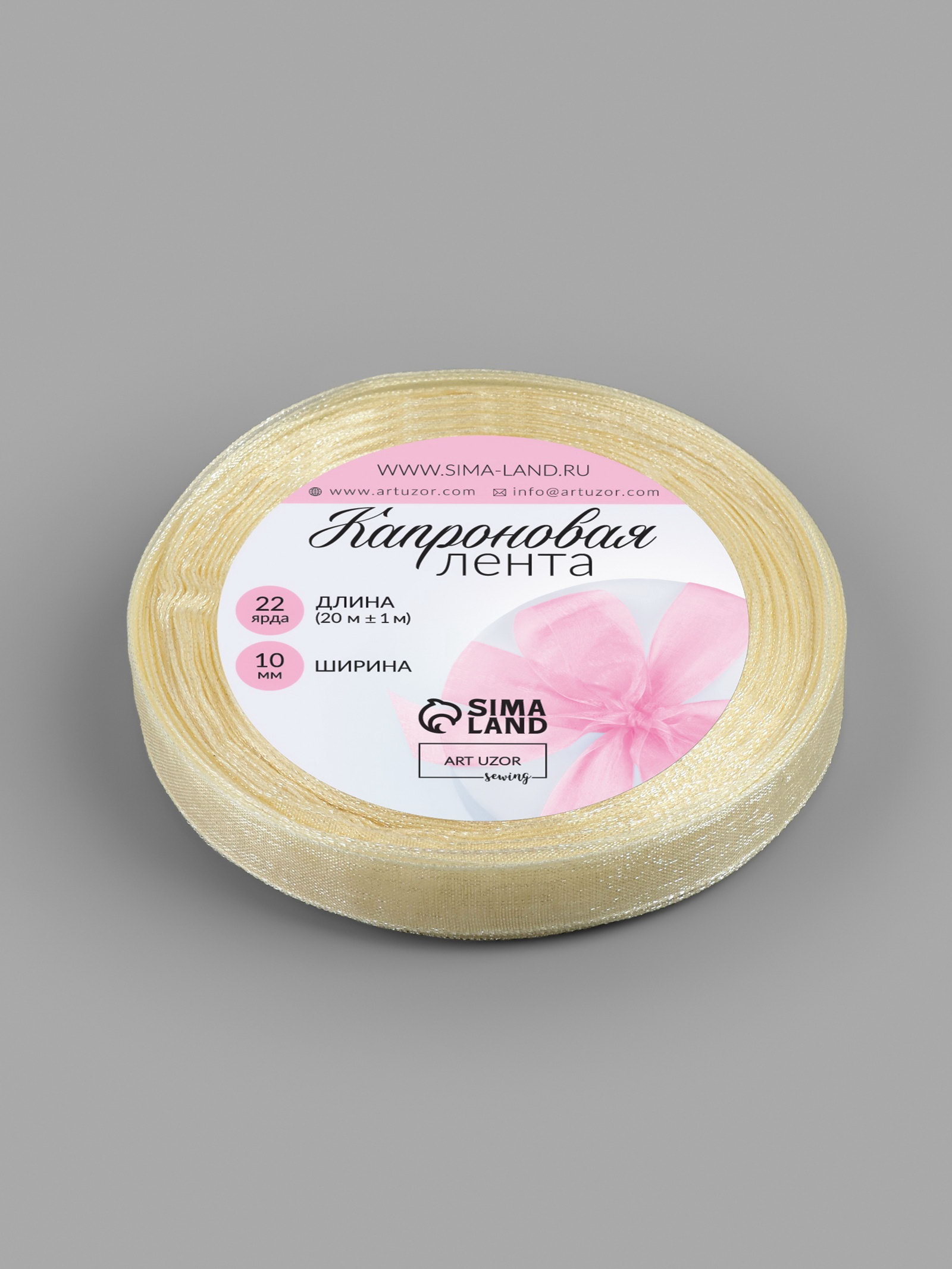 Лента капроновая, 10 мм, 20+-1 м, цвет слоновая кость №08, 8x8x1 см., Арт Узор, Китай