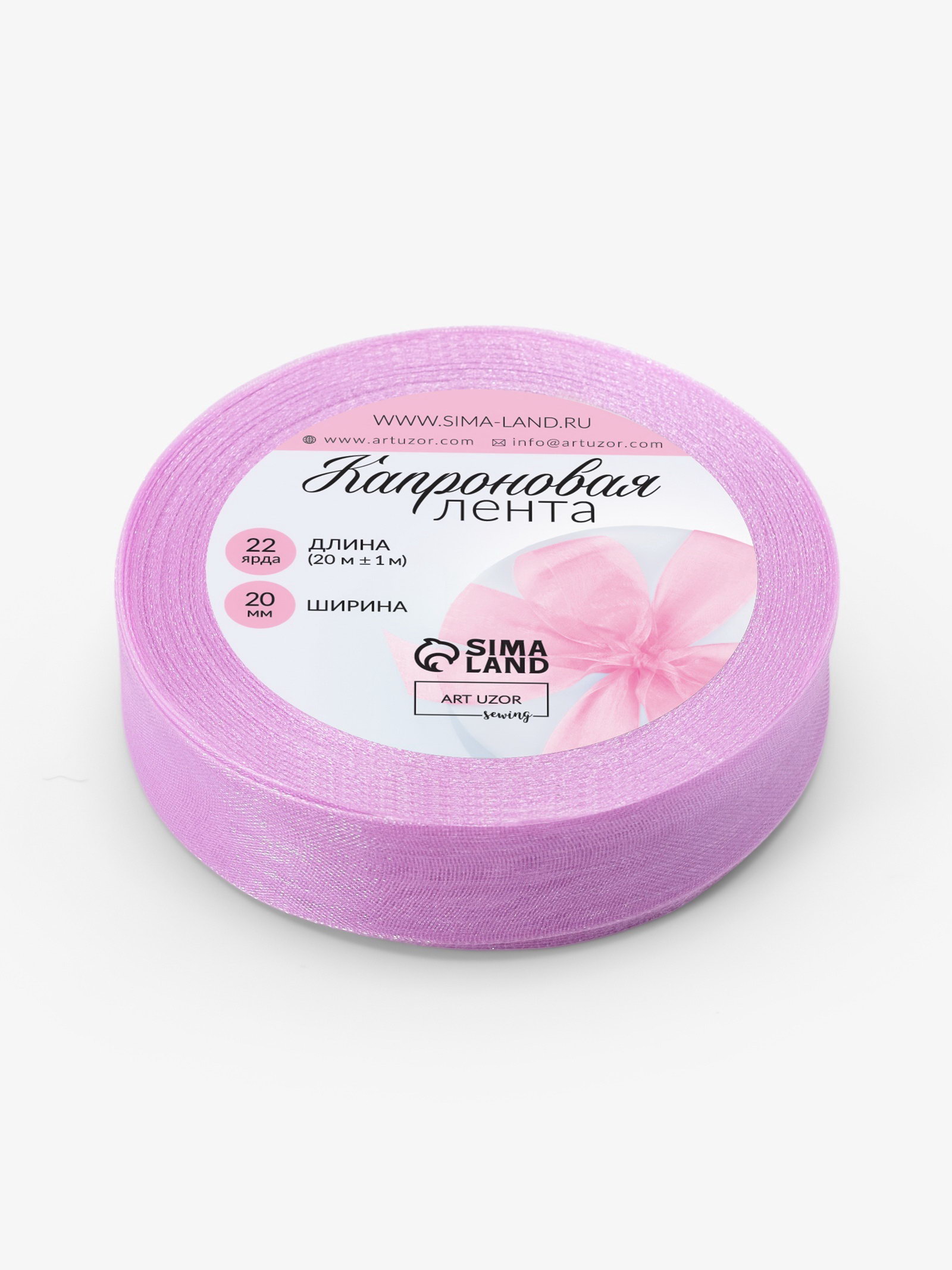 Лента капроновая, 20 мм, 20+-1 м, сиреневая, №44, 8x8x2 см., Арт Узор, Китай