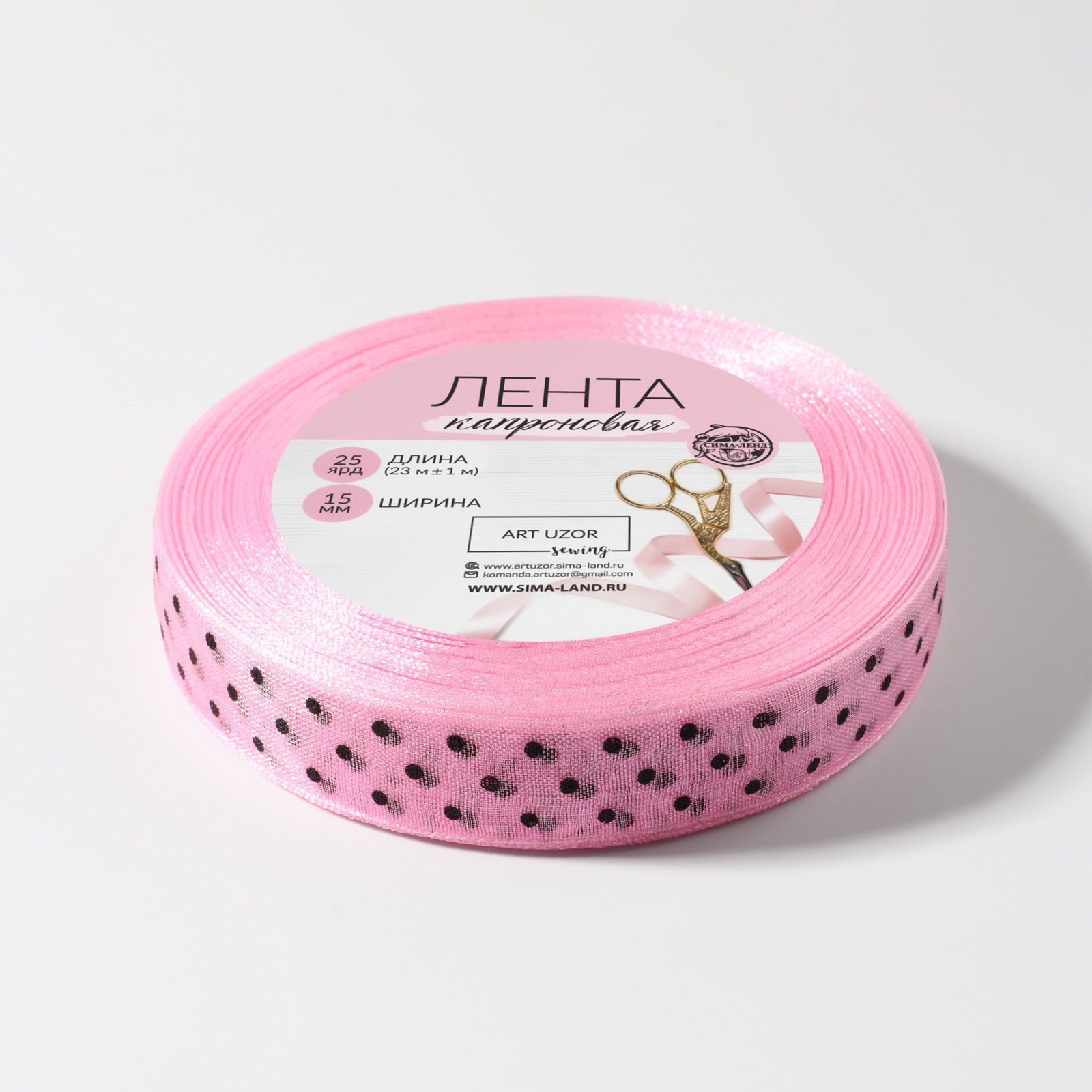 Лента капроновая "Горох", 15 мм, 23+-1 м, розовая, 8x8x1.5 см., Арт Узор, Китай