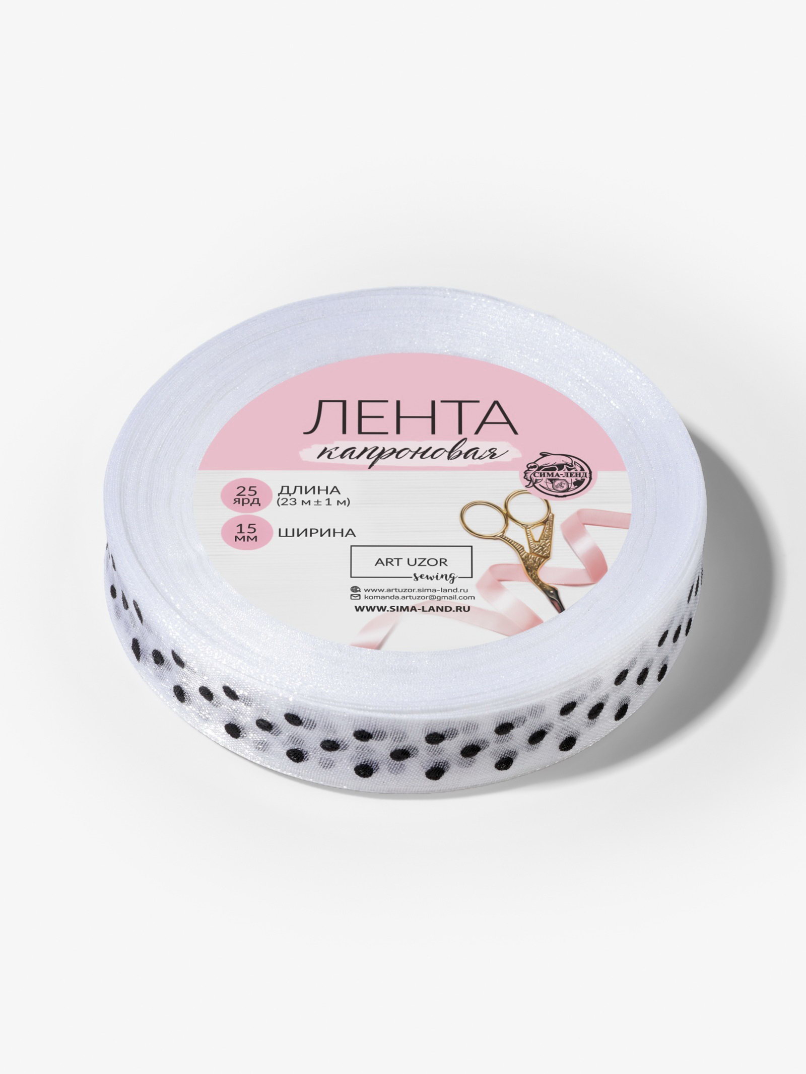 Лента капроновая "Горох", 15 мм, 23+-1 м, белая, 8x8x1.5 см., Арт Узор, Китай