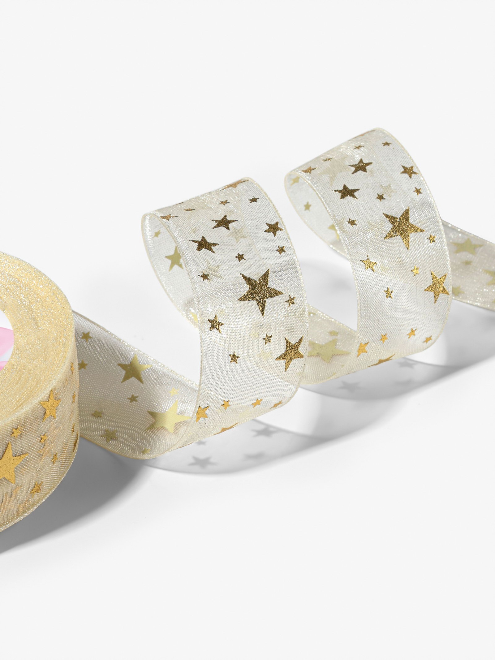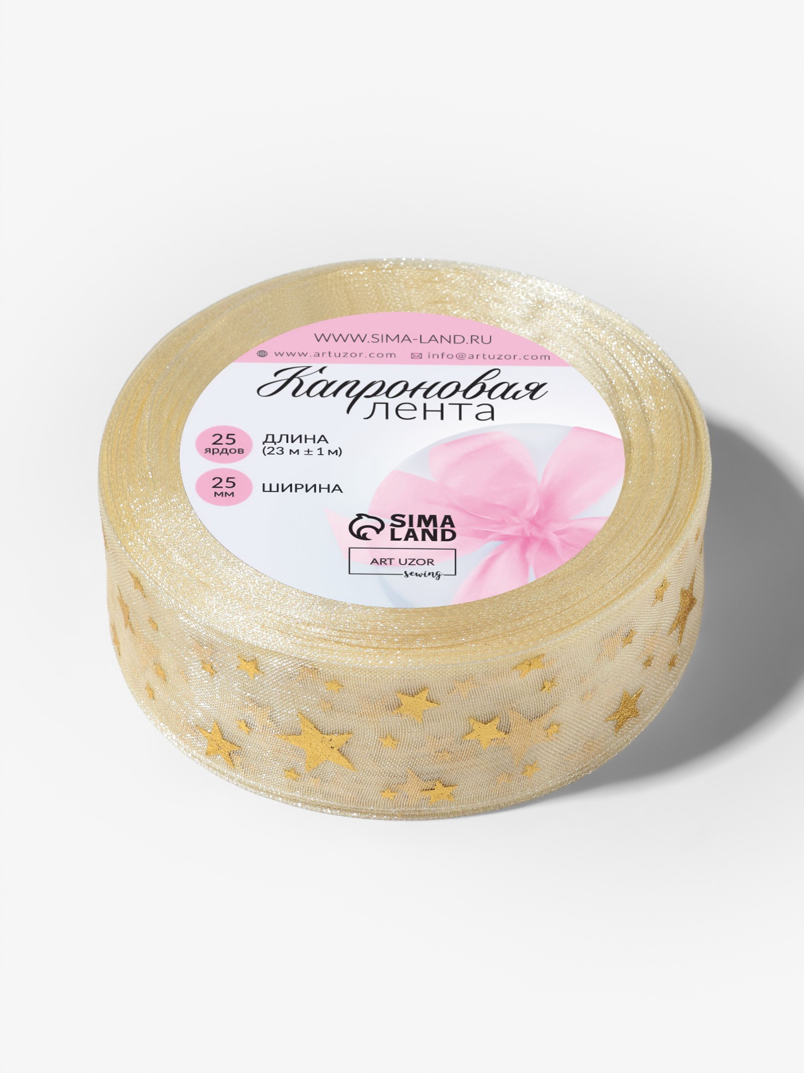 Лента капроновая с тиснением "Звёзды", 25 мм, 23+-1 м, бежевая, 9x9x2.5 см., Арт Узор, Китай