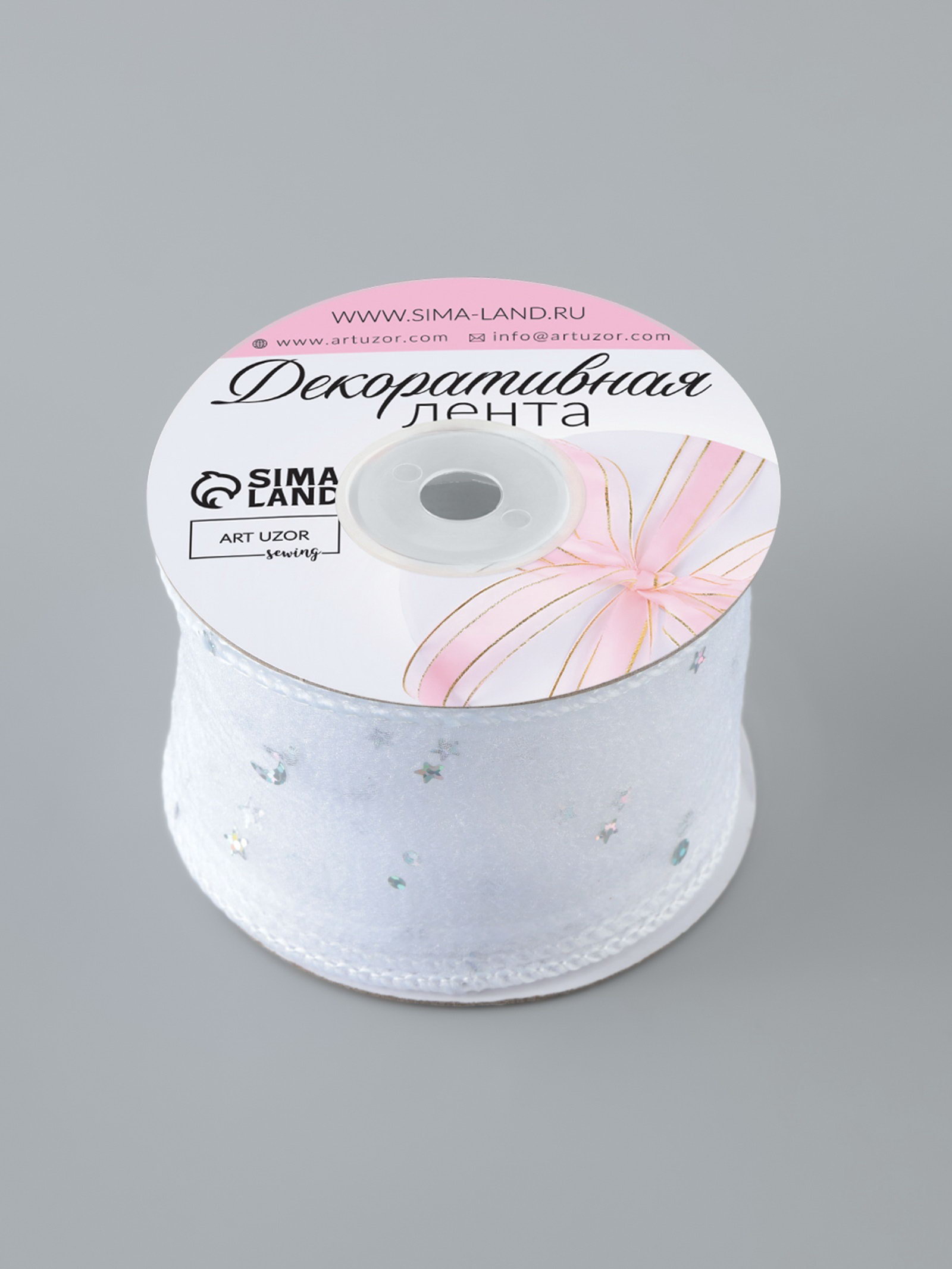 Лента капроновая "Волна", с блёстками, 50 мм, 9+-1 м, белая, 9.5x9.5x5 см., Арт Узор, Китай