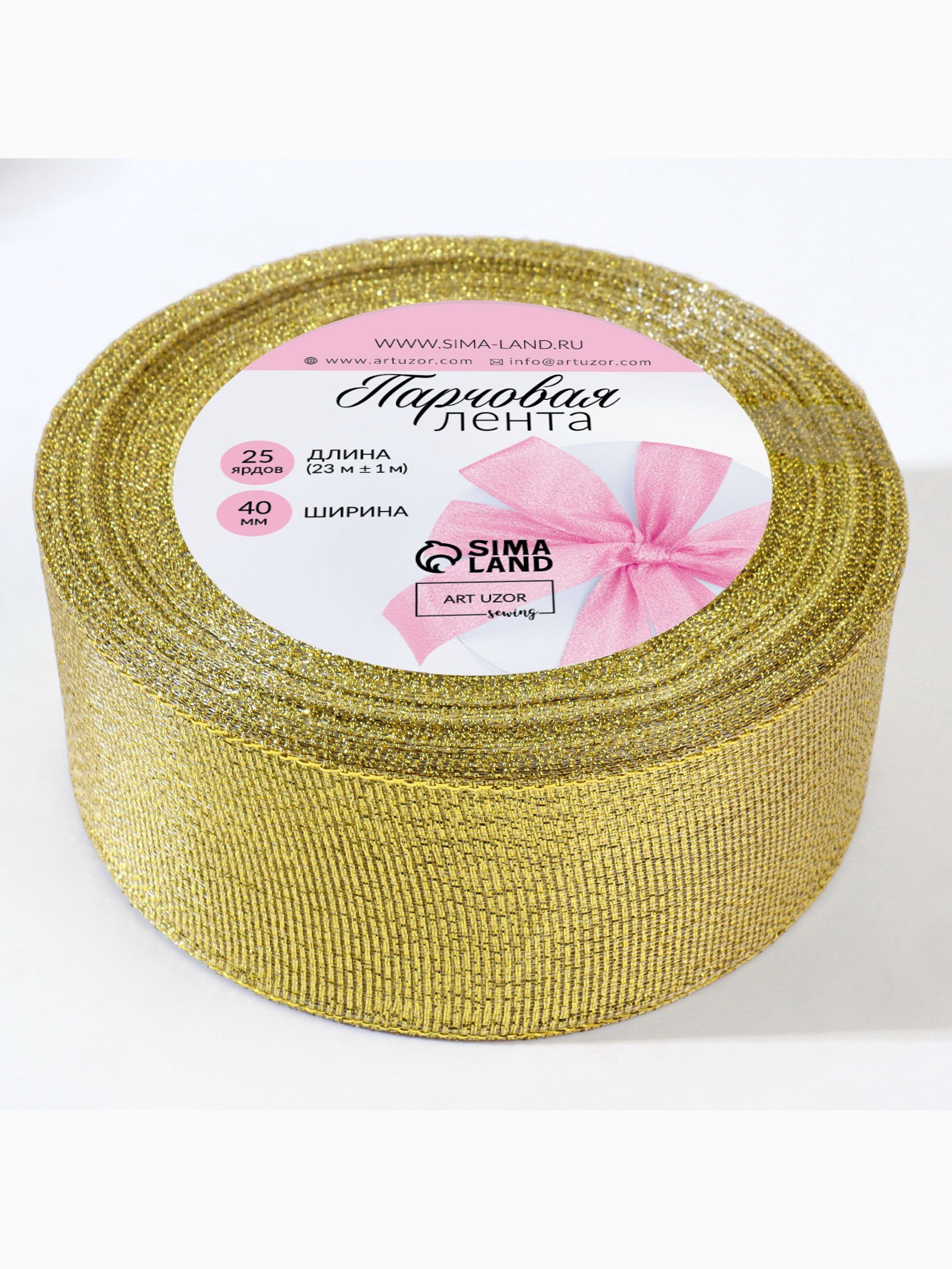 Лента парчовая, 40 мм, 23+-1 м, цвет золотой, 9x9x4 см., Арт Узор, Китай