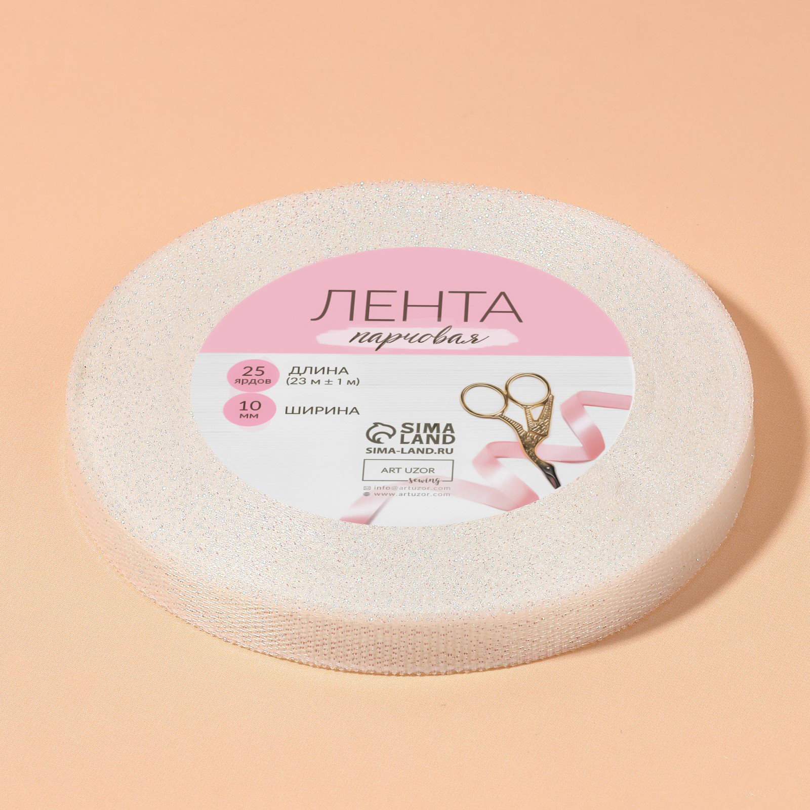 Лента парчовая, 10 мм, 23+-1 м, голографическая, 10x10x1 см., Арт Узор, Китай