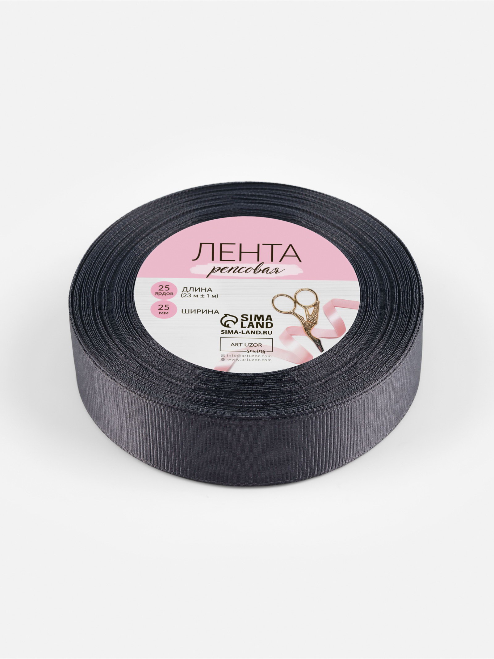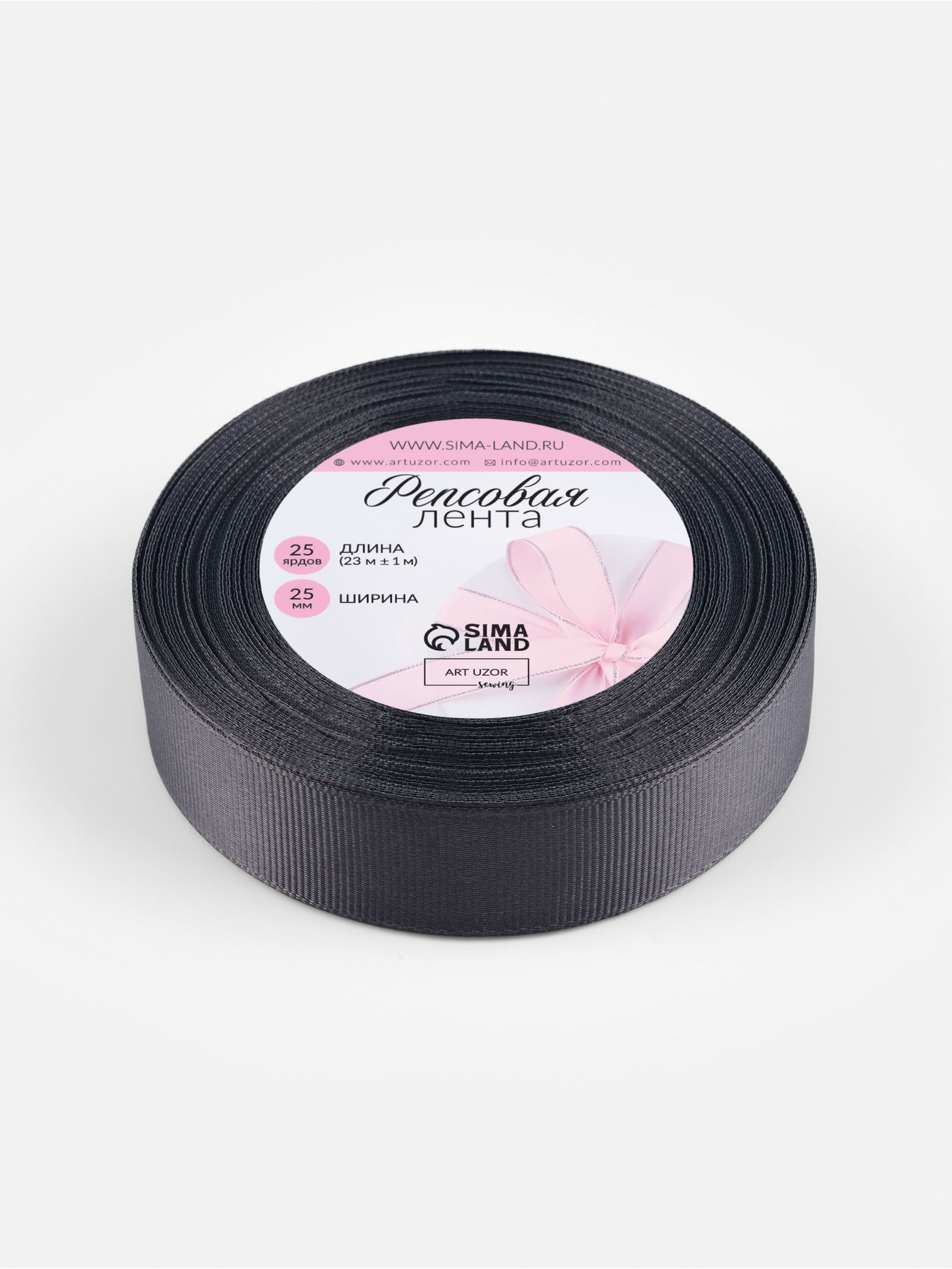 Лента репсовая, 25 мм, 23+-1 м, тёмно-серая №242, 10x10x2.5 см., Арт Узор, Китай