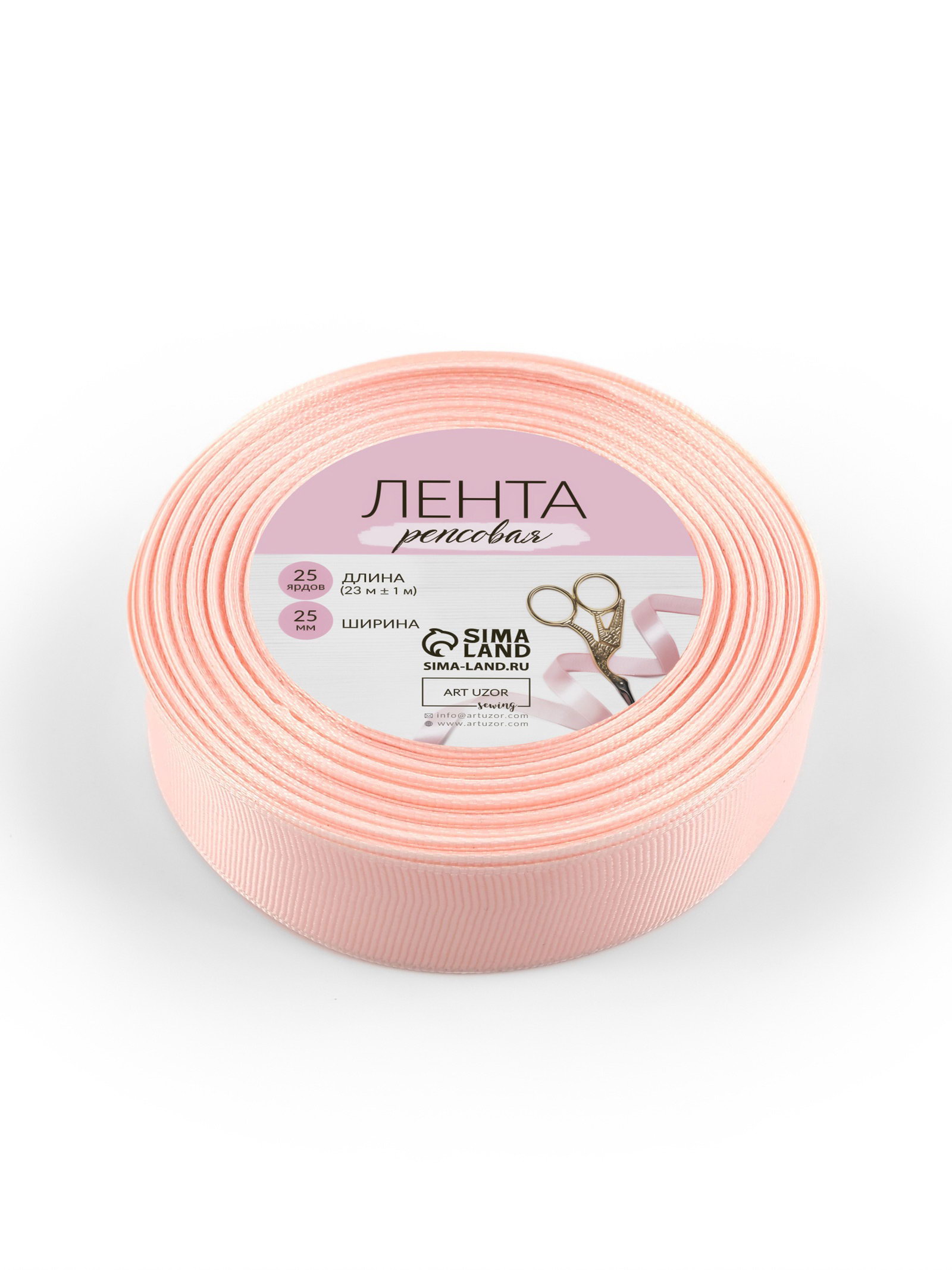 Лента репсовая, 25 мм, 23+-1 м, персиковая №07, 10x10x2.5 см., Арт Узор, Китай