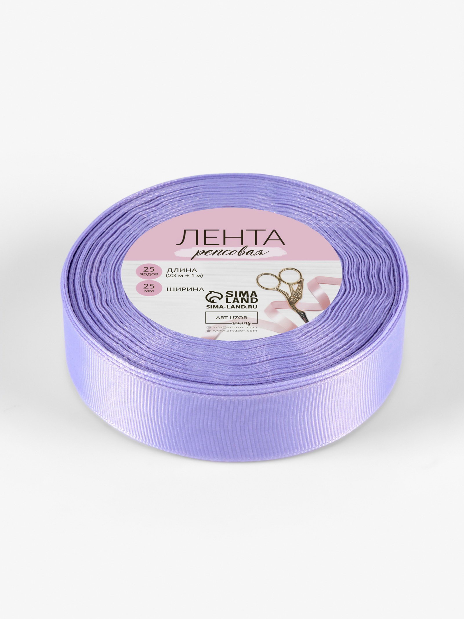 Лента репсовая, 25 мм, 23+-1 м, сиреневая №21, 10x10x2.5 см., Арт Узор, Китай