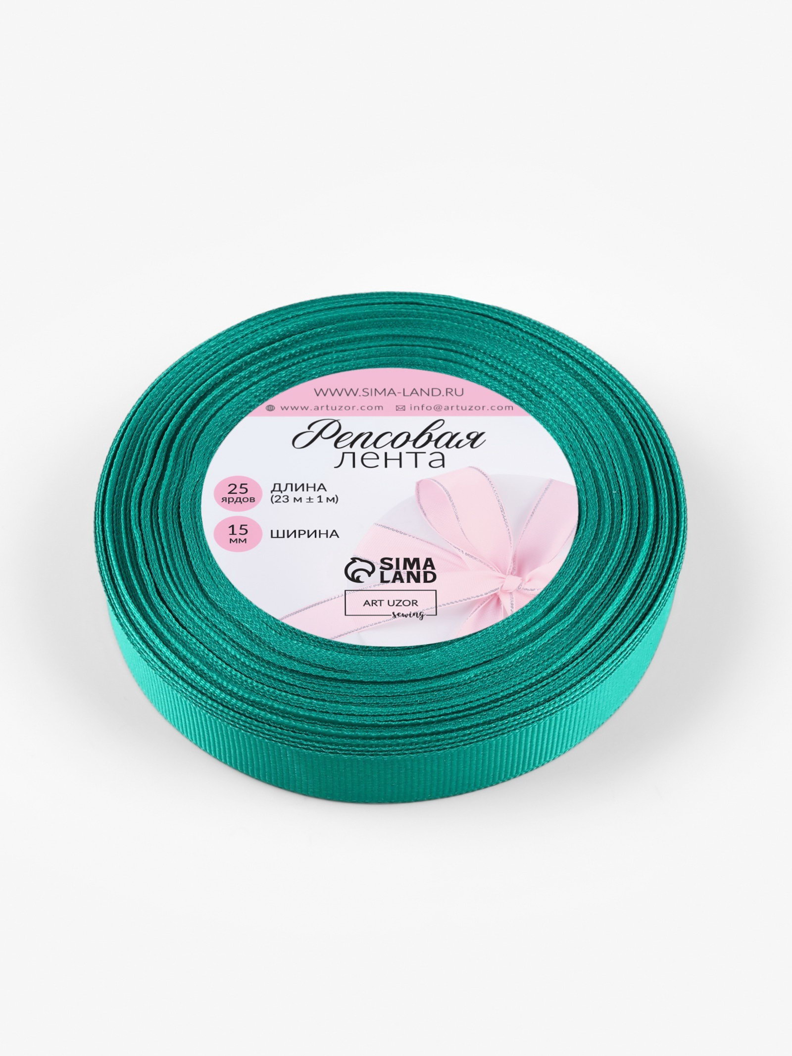 Лента репсовая, 15 мм, 23+-1 м, бирюзовая №209, 10x10x1.5 см., Арт Узор, Китай