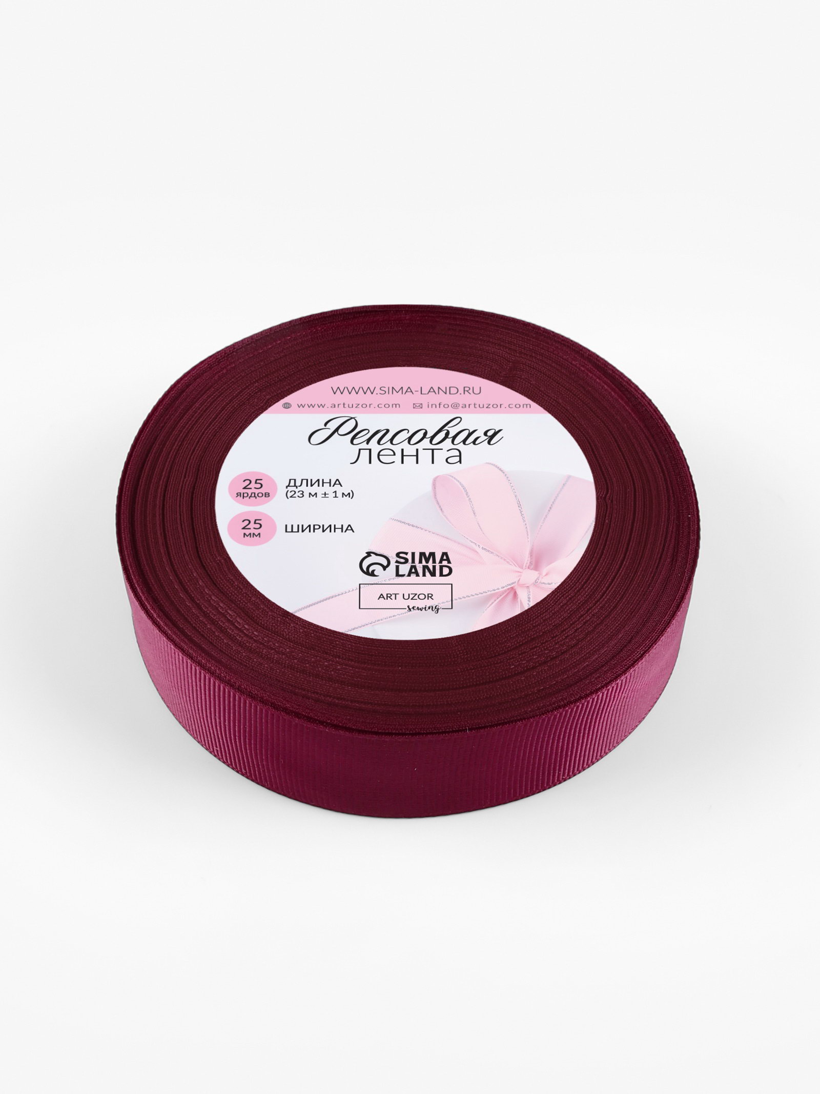 Лента репсовая, 25 мм, 23+-1 м, бордовая №80, 10x10x2.5 см., Арт Узор, Китай