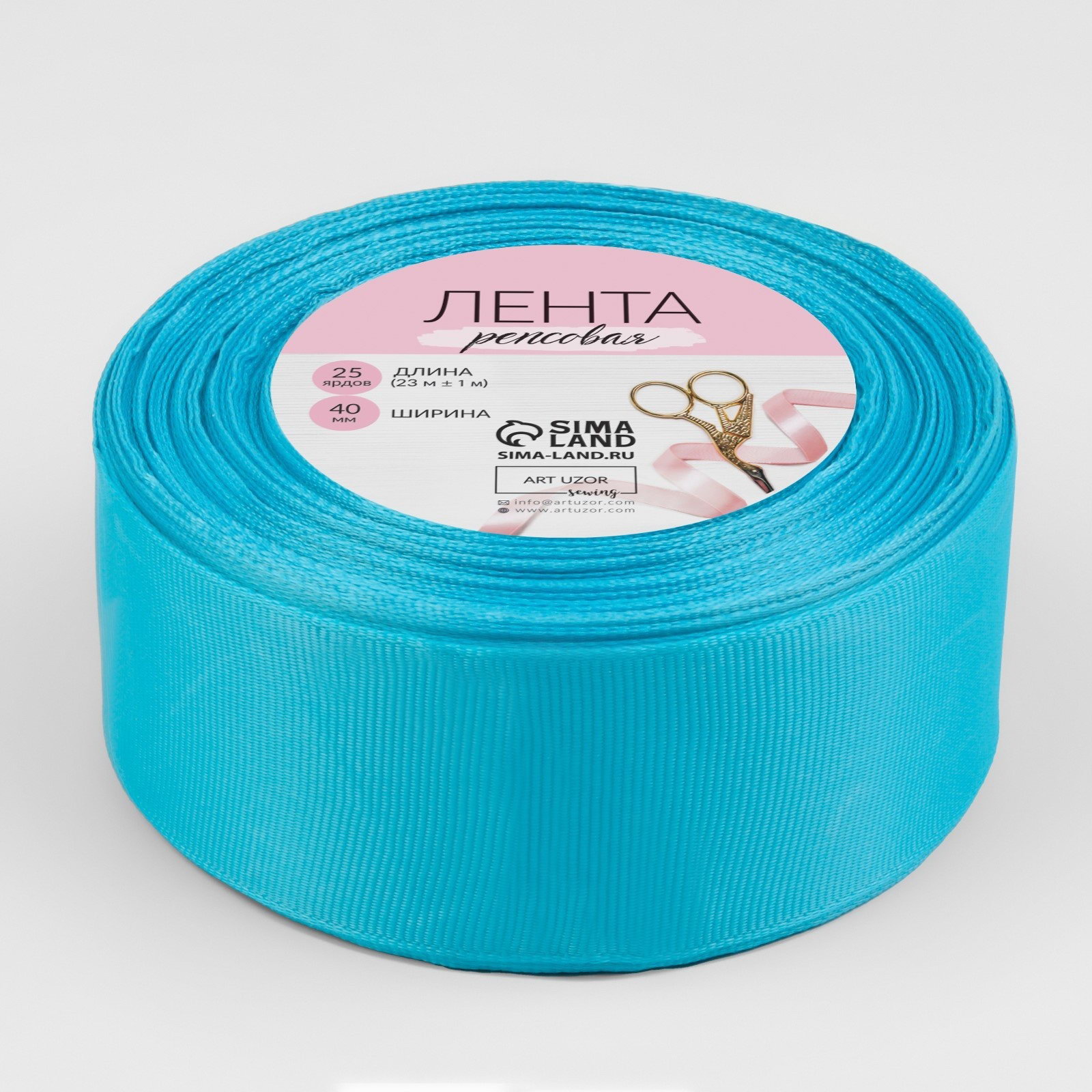Лента репсовая, 40 мм, 23+-1 м, голубая №20, 10x10x4 см., Арт Узор, Китай