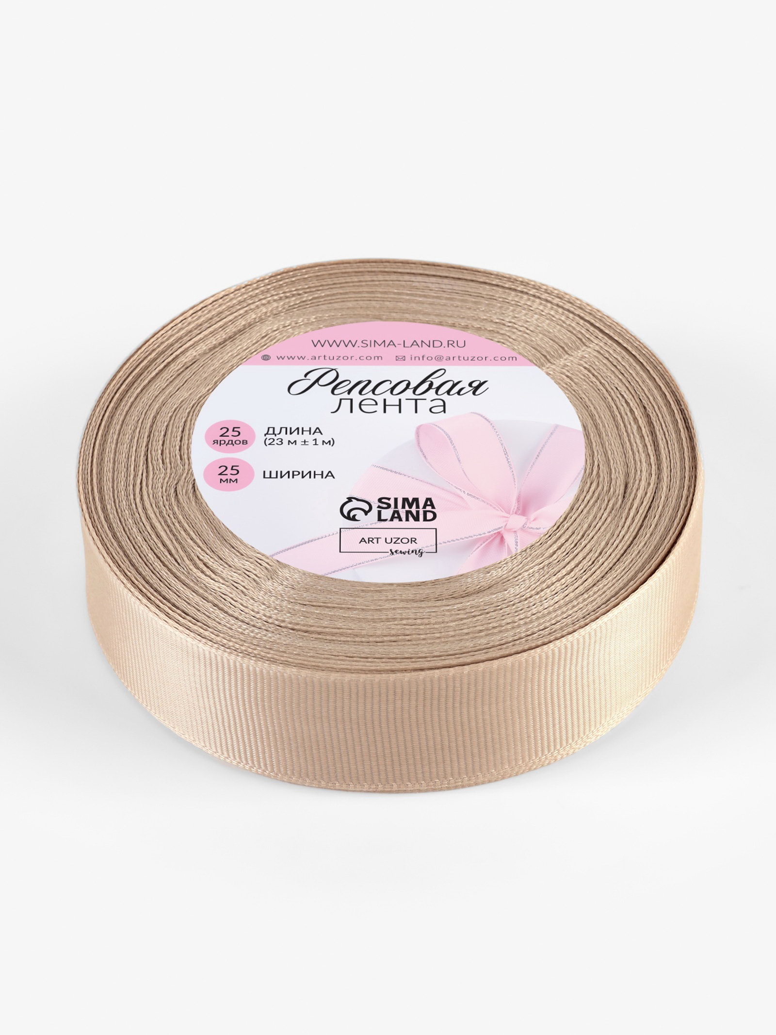 Лента репсовая, 25 мм, 23+-1 м, бежевая №173, 10x10x2.5 см., Арт Узор, Китай