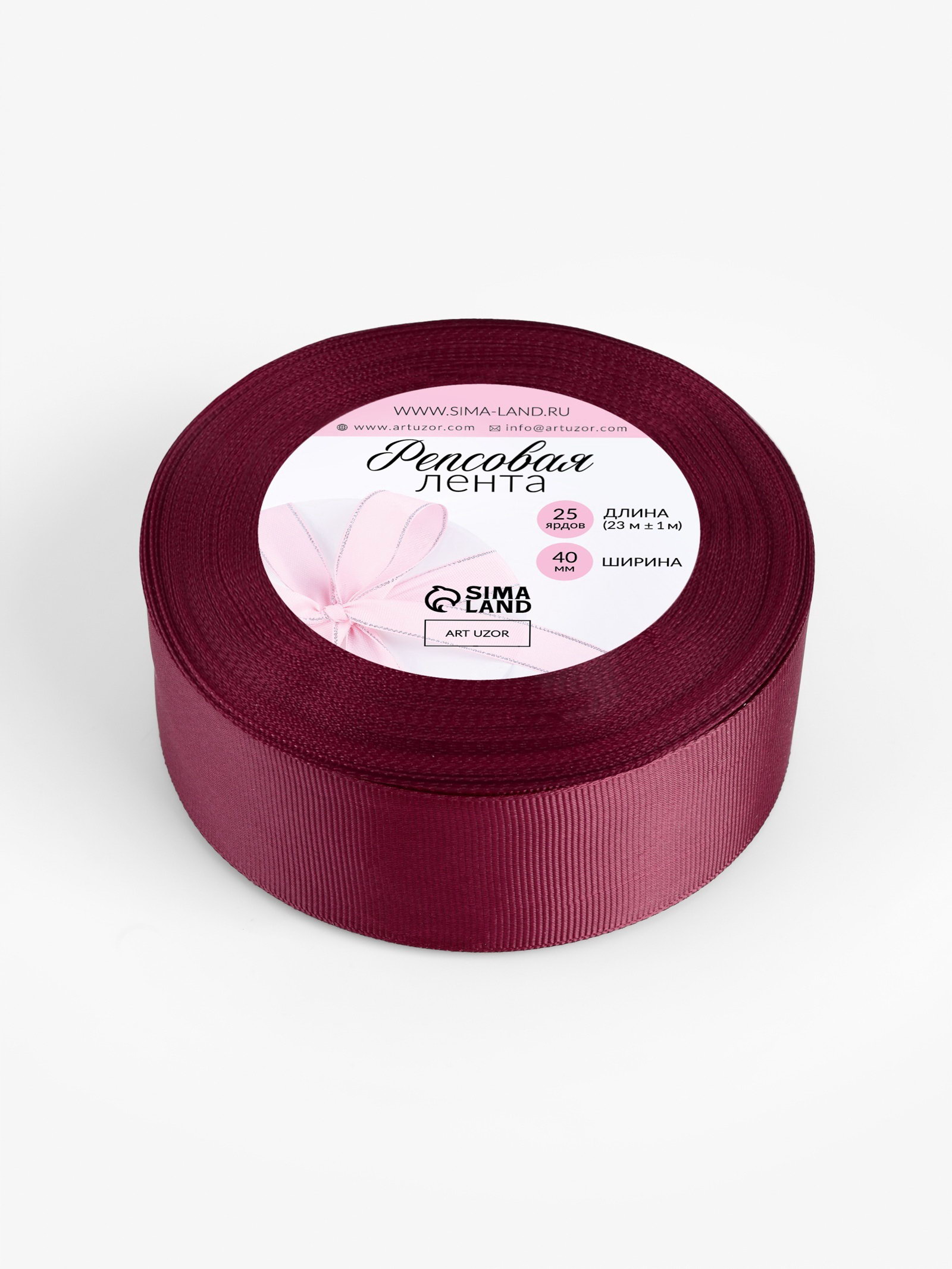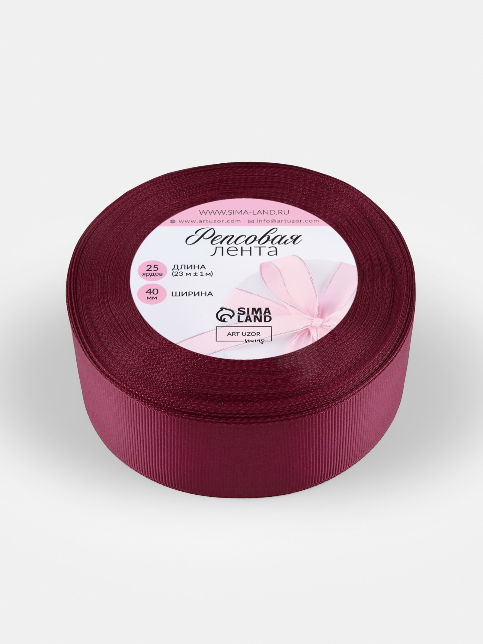 Лента репсовая, 40 мм, 23+-1 м, бордовая №80, 10x10x4 см., Арт Узор, Китай