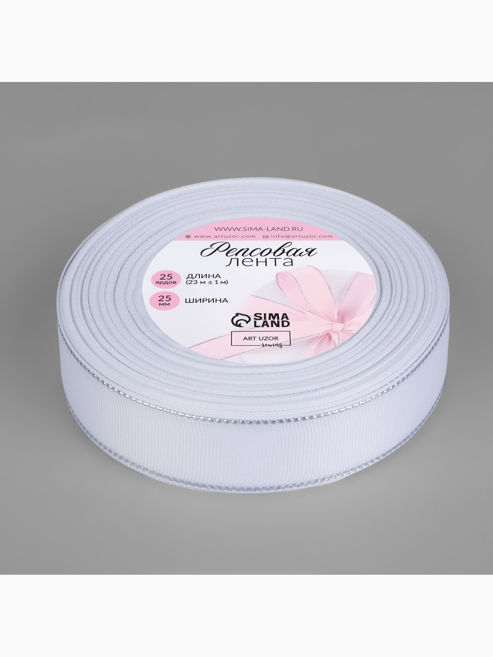 Лента репсовая, с серебряным люрексом, 25 мм, 23+-1 м, белая №001, 10x10x2.5 см., Арт Узор, Китай