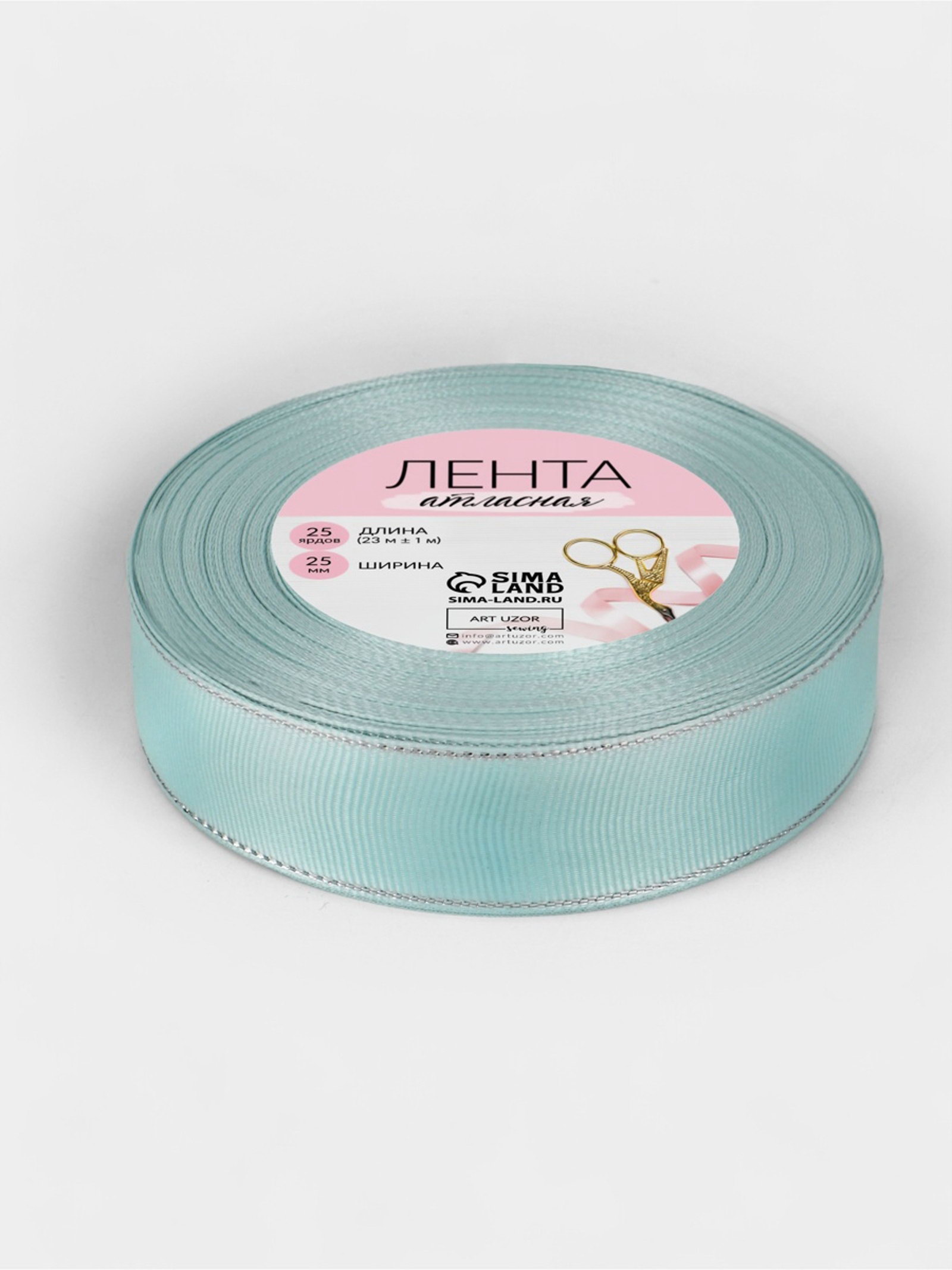 Лента репсовая, с серебряным люрексом, 25 мм, 23+-1 м, светло-голубая №013, 9x9x2.5 см., Арт Узор, Китай