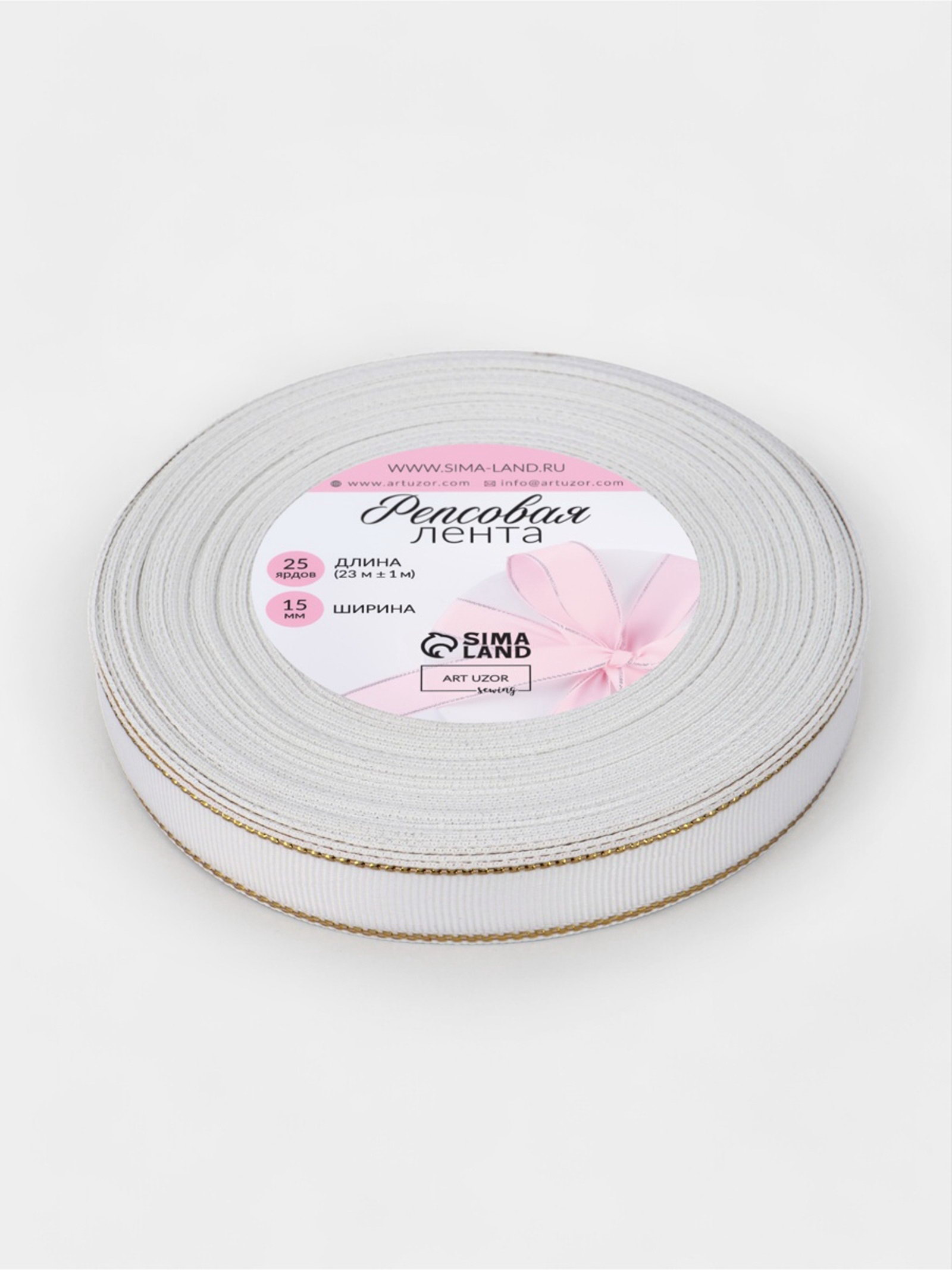 Лента репсовая, с золотым люрексом, 15 мм, 23+-1 м, белая №001, 9x9x1.5 см., Арт Узор, Китай