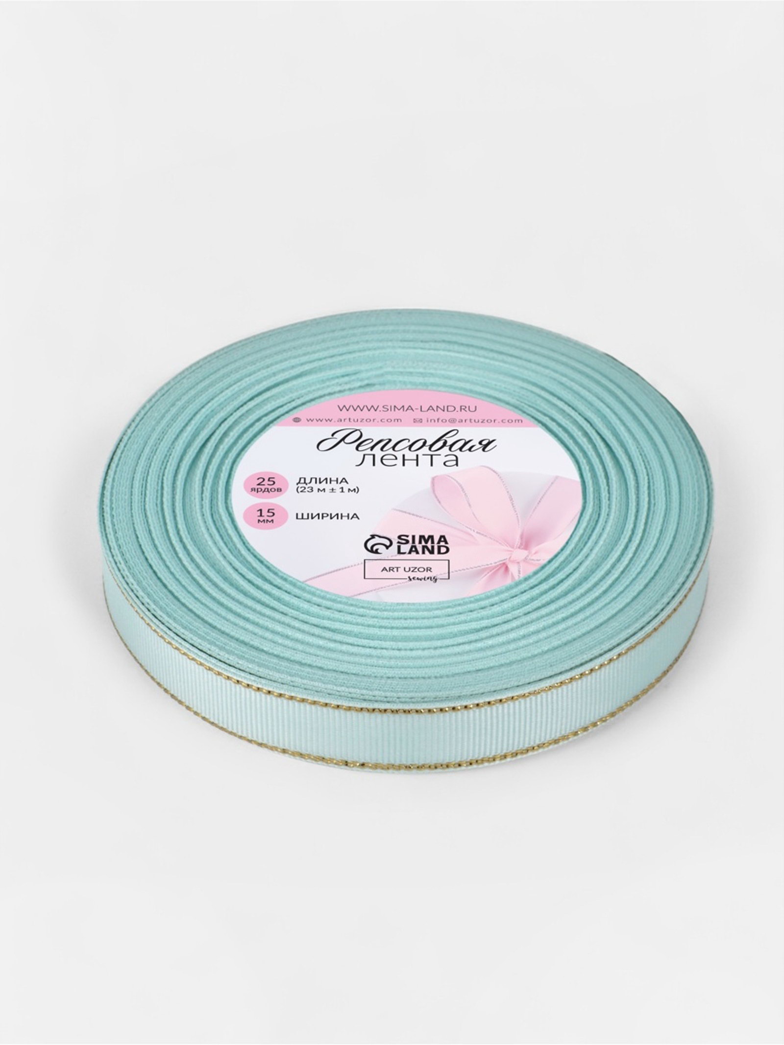 Лента репсовая, с золотым люрексом, 15 мм, 23+-1 м, светло-голубая №013, 9x9x1.5 см., Арт Узор, Китай
