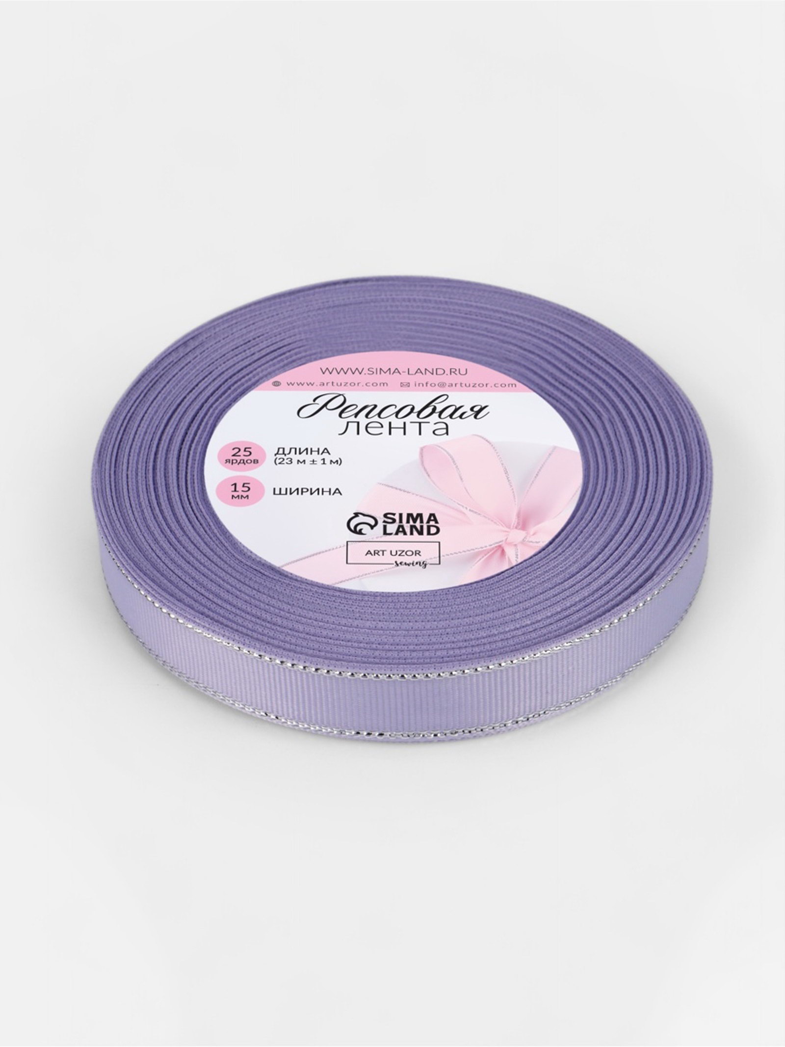 Лента репсовая, с серебряным люрексом, 15 мм, 23+-1 м, сиреневая №021, 9x9x1.5 см., Арт Узор, Китай