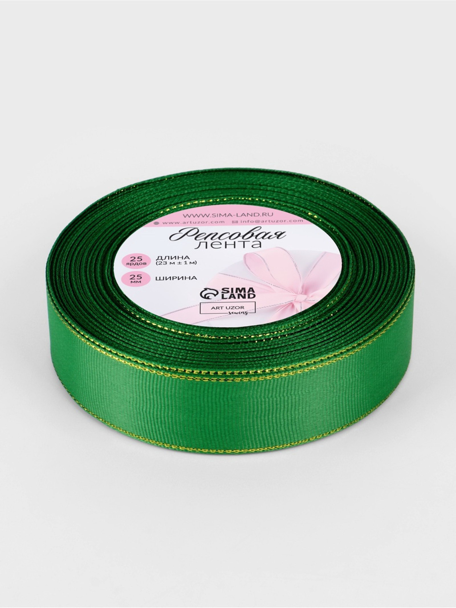 Лента репсовая, с золотым люрексом, 25 мм, 23+-1 м, зелёная №019, 9x9x2.5 см., Арт Узор, Китай