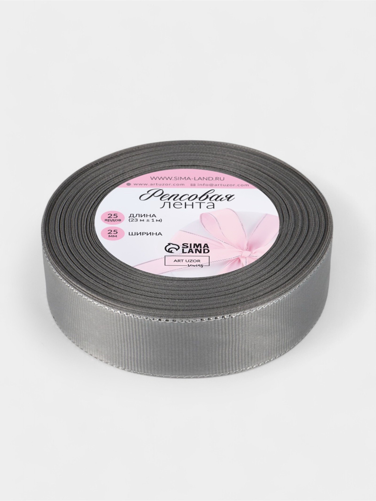 Лента репсовая, с серебряным люрексом, 25 мм, 23+-1 м, светло-серая №003, 9x9x2.5 см., Арт Узор, Китай