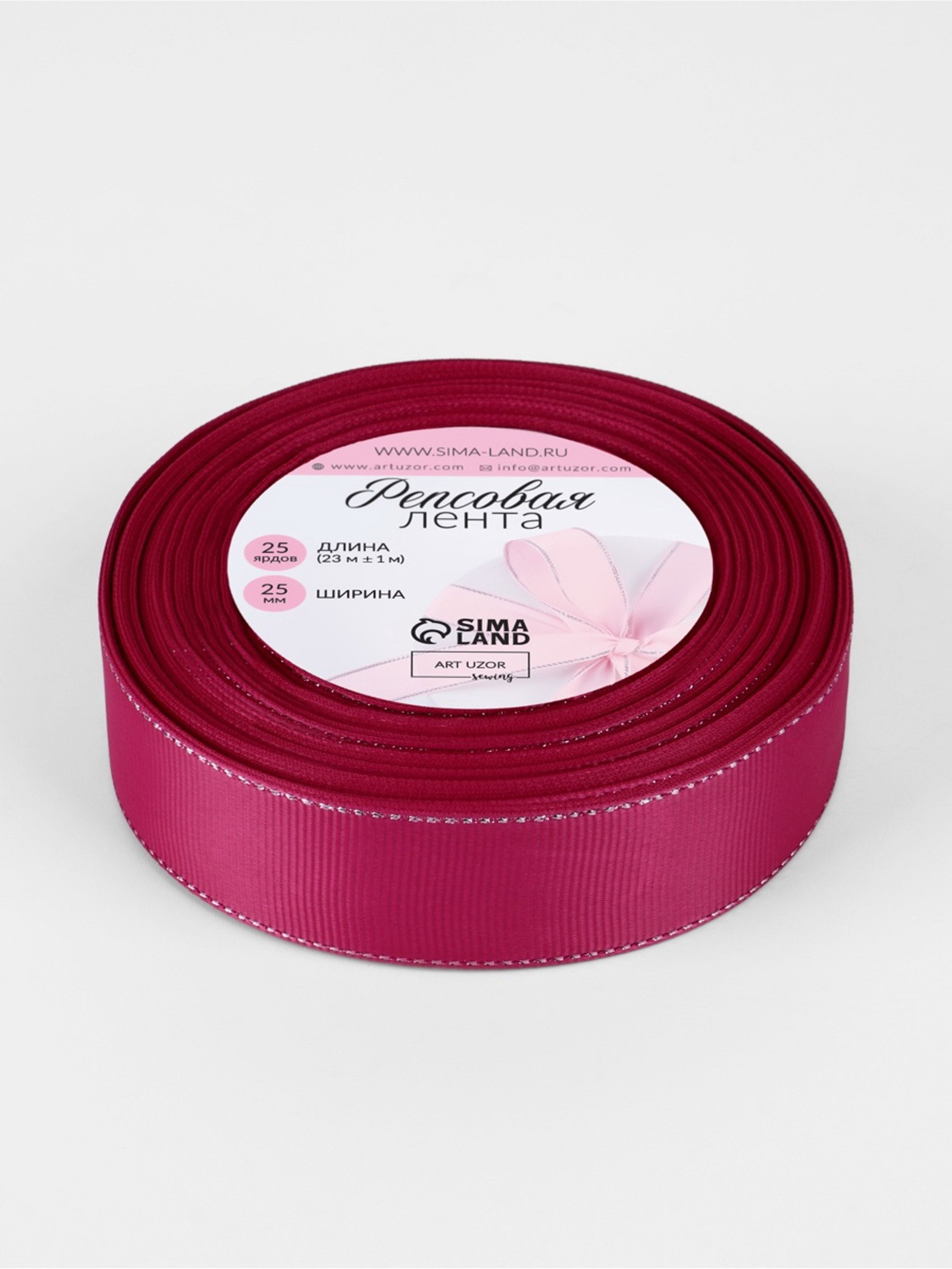 Лента репсовая, с серебряным люрексом, 25 мм, 23+-1 м, ярко-розовая №028, 9x9x2.5 см., Арт Узор, Китай