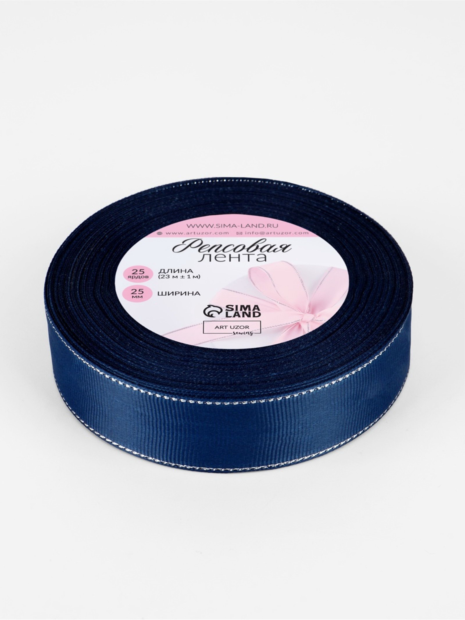 Лента репсовая, с серебряным люрексом, 25 мм, 23+-1 м, тёмно-синяя №038, 9x9x2.5 см., Арт Узор, Китай